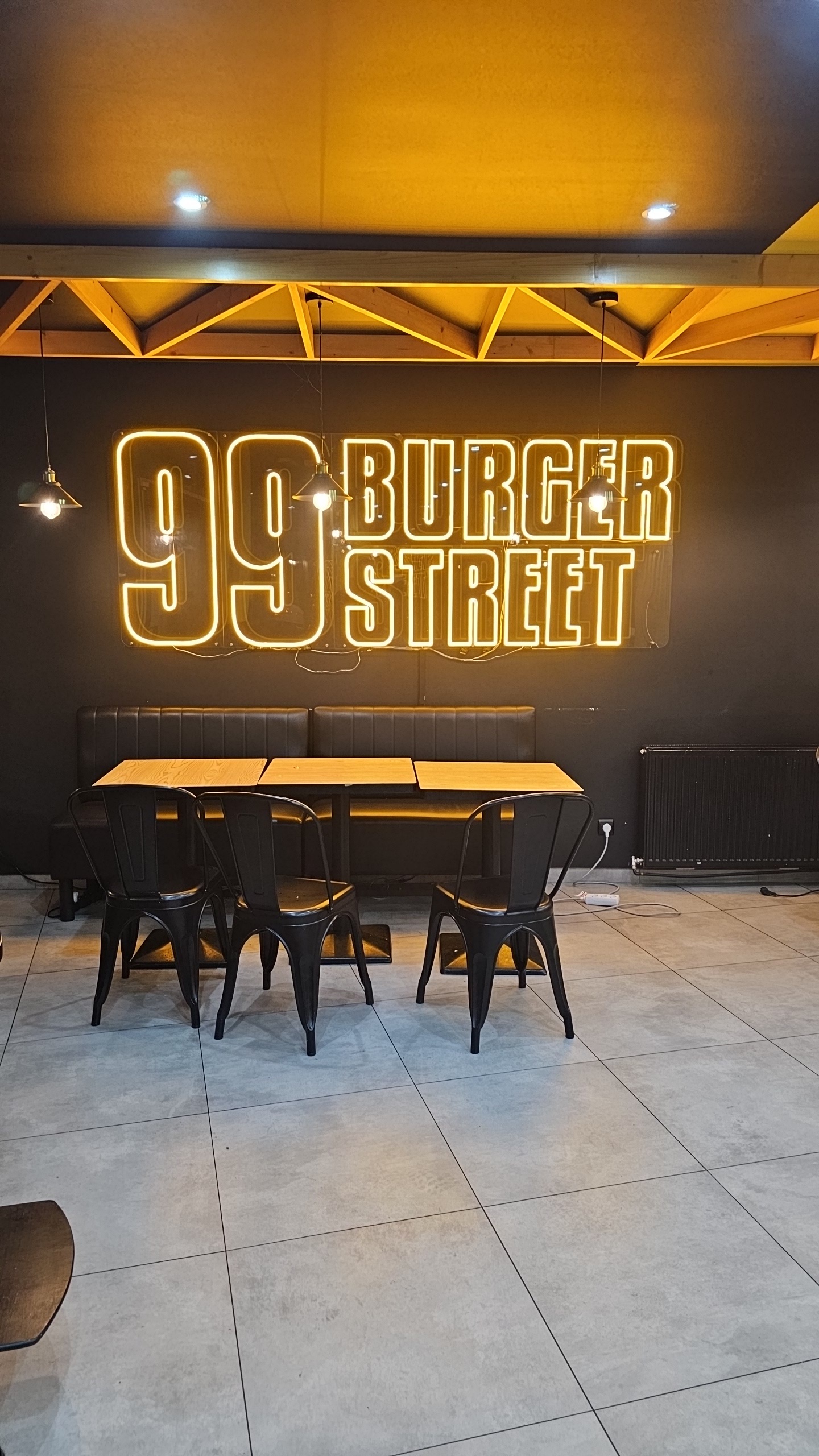 Par où commencez ? Je sais même pas quoi dire tellement j’ai été agréablement surpris pas ce restaurant le 99 Burger Street 🍔 L’équipe est jeune motivée très professionnel et tout à la fois souriante On voit de l’envie dans leur façons de faire et cela mérite une admiration Leur Burgers phare qui sont le Five et Les Shakes sont juste excellent et goûteux assez copieux aussi Si on y ajoute la touche américaine Qu’ils ramène à anemasse avec leur Cheese Dog et Hot dog qu’on peut composer Leur desserts sont très bon aussi Que dire un 10/10 ( j’ai pas pu goûter les frite waivy qui ont été victime de leur succès je reviendrai ) Un pur Régal dans un endroit chaleureux 😋😋 Merci pour la petite carte de fidélité je reviendrai