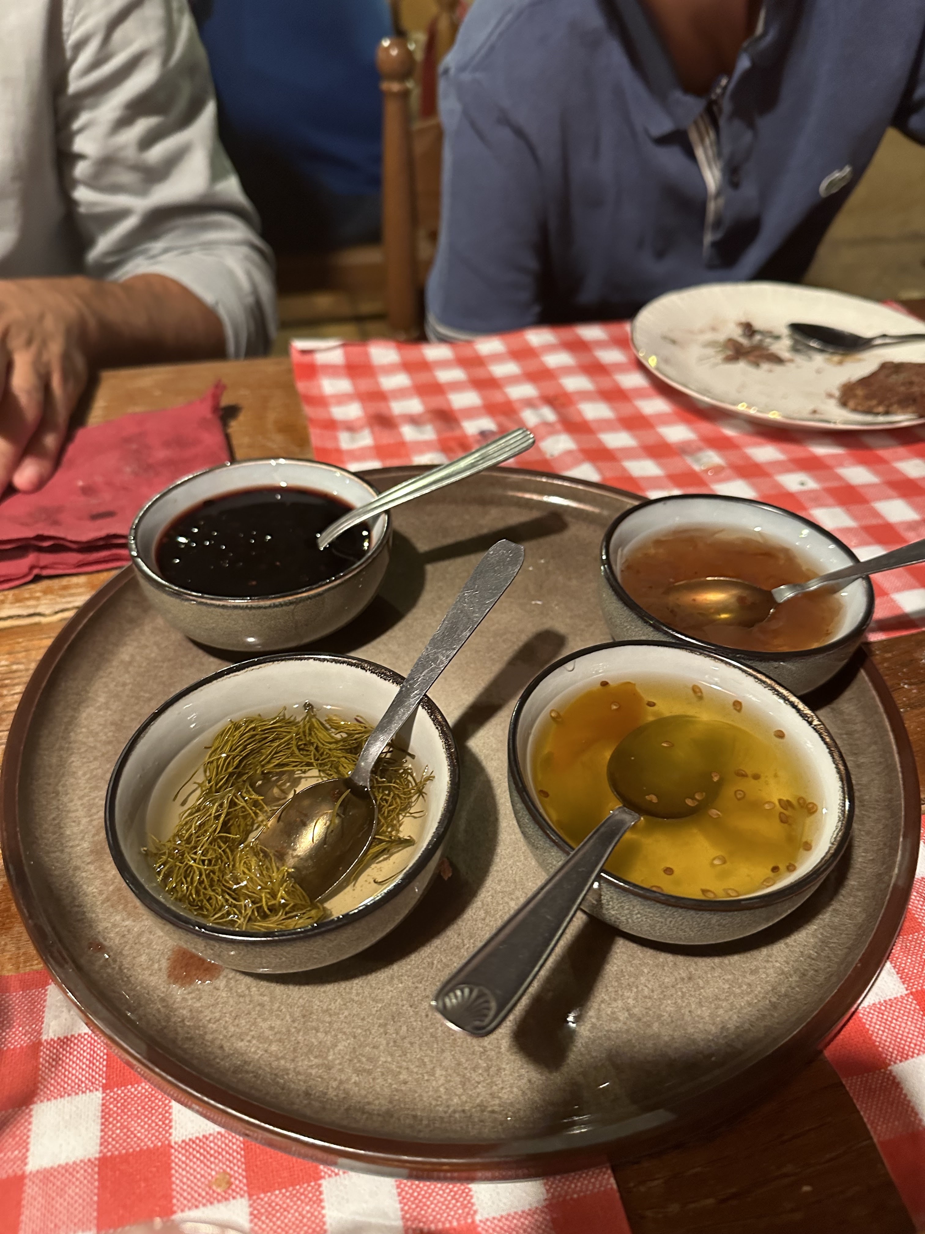 Dans la fraîcheur de la salle sous la canicule extérieure, il faut être doté d'un bel appétit pour ces plats copieux parfumés variés et tellement bons! Belle expérience dont on aurait aimé voir le jardin : la prochaine fois !