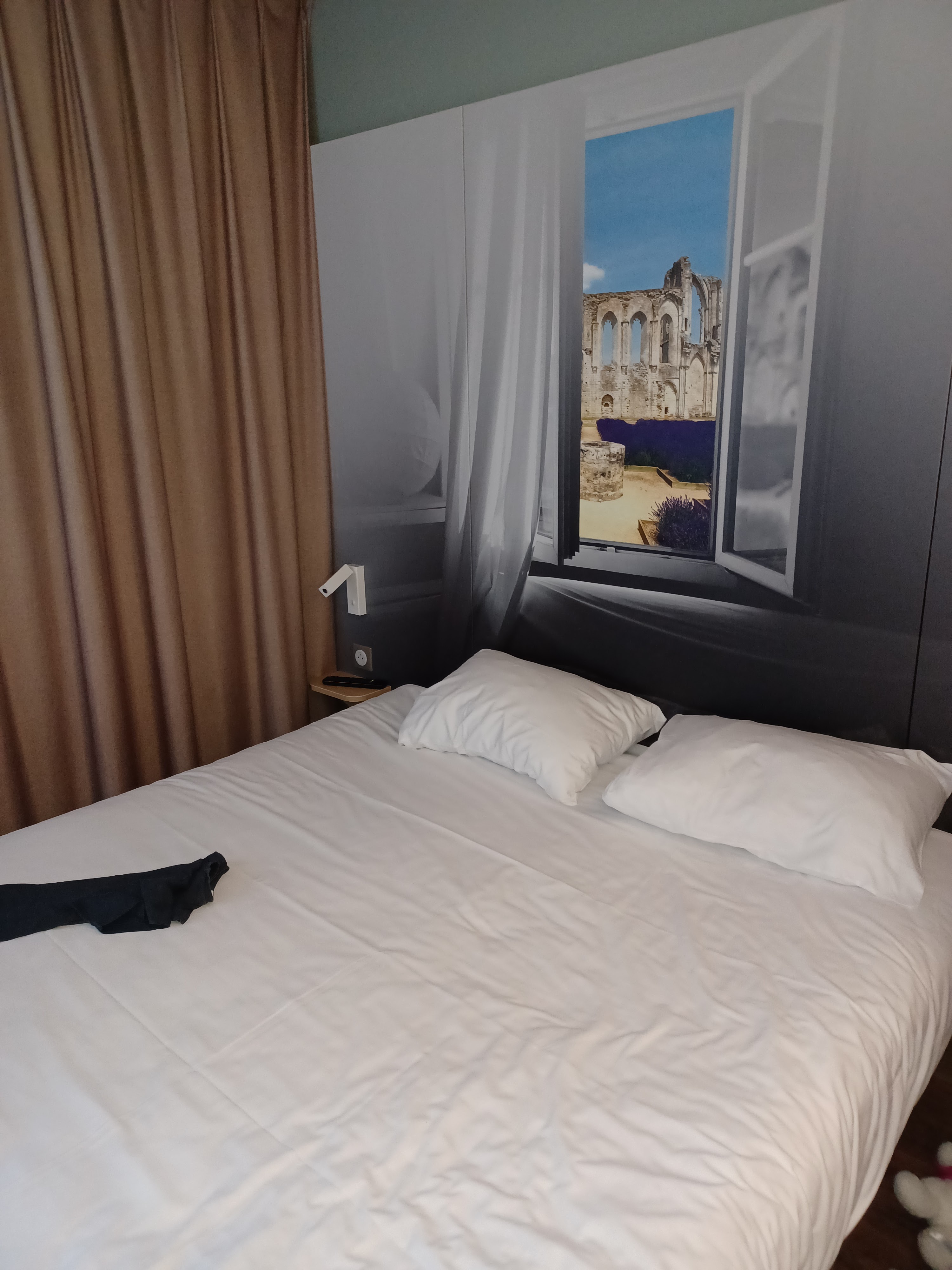Nous avons apprécié la localisation par rapport au Puy du fou ainsi que la propreté de l'hôtel et de la chambre. Le tout vaut largement les 2 étoiles. Ainsi, la chambre était très simpliste mais avait tout ce qu'il fallait même s'il manquait 2 oreillers mais la literie était confortable, nous avons bien dormi. Cependant, l'arrivée étant tardive, nous avons été accueillis par des voyageurs en train de boire de l'alcool sur le parking, ce n'était pas rassurant, et avons été réveillés assez tôt par le vibreur incessant du téléphone d'à côté. Le petit déjeuner était quant à lui bien mais pas aussi complet qu'ailleurs. Nous recommandons tout de même pour un très court séjour.