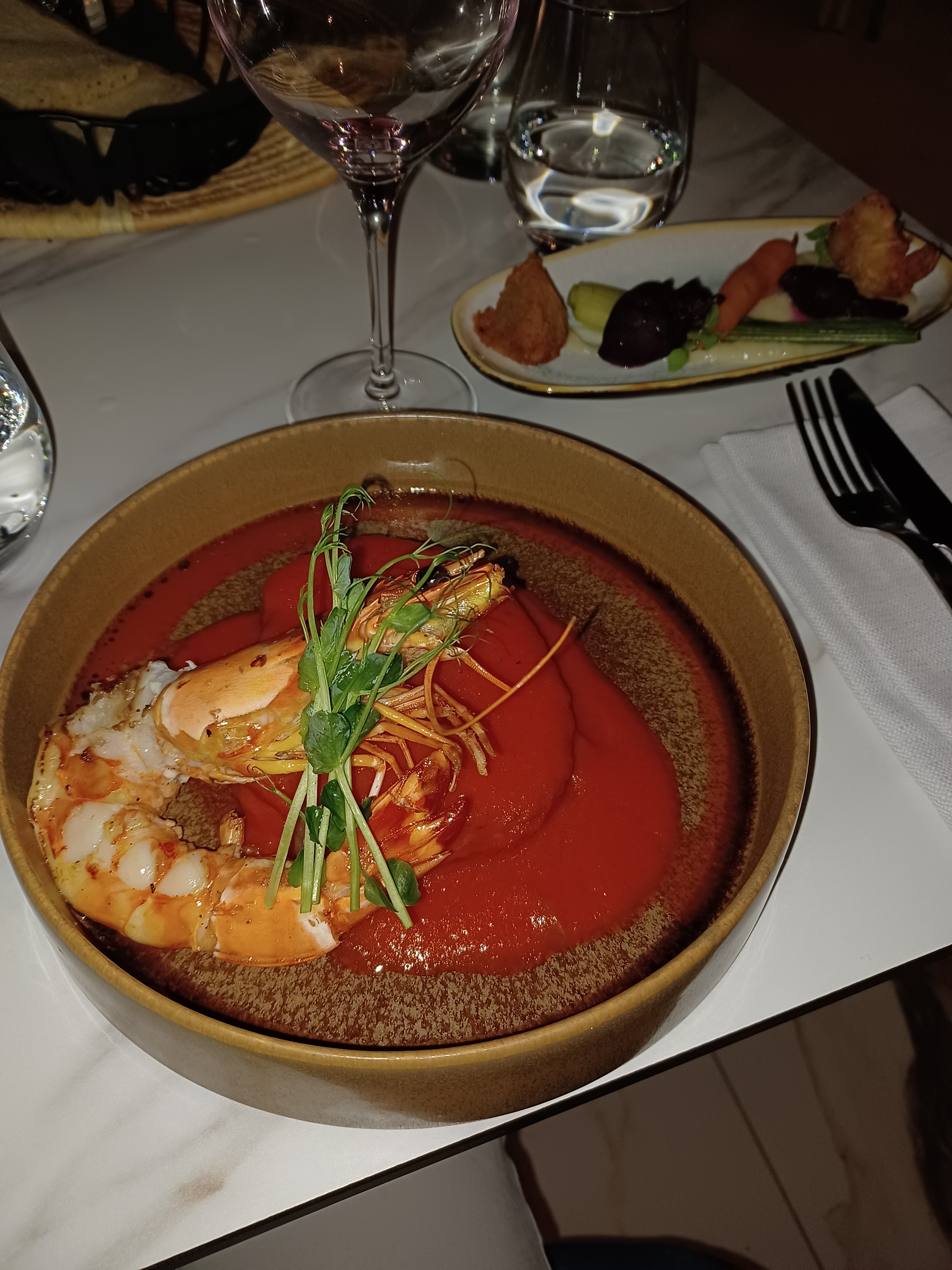 Bonne expérience en général, Mets exceptionnels, bon cocktails et bonne carte de vin, très beau cadre également, une ambiance musicale jazzy électro aurait collée parfaitement au thème 🎷 et pour l'étoile manquante, comme dans de nombreux établissements qui se veulent chic et je pense que celui ci réunis pratiquement tout les critères, il ne manque qu'une seule chose à mon sens : un service suivi par le ou la même serveuse durant tout le repas, c'est beaucoup plus agréable pour le client et, ayant été dans la restauration plus de 10 ans, plus facilement gérable par le personnel. Nous reviendrons À bientôt 😉