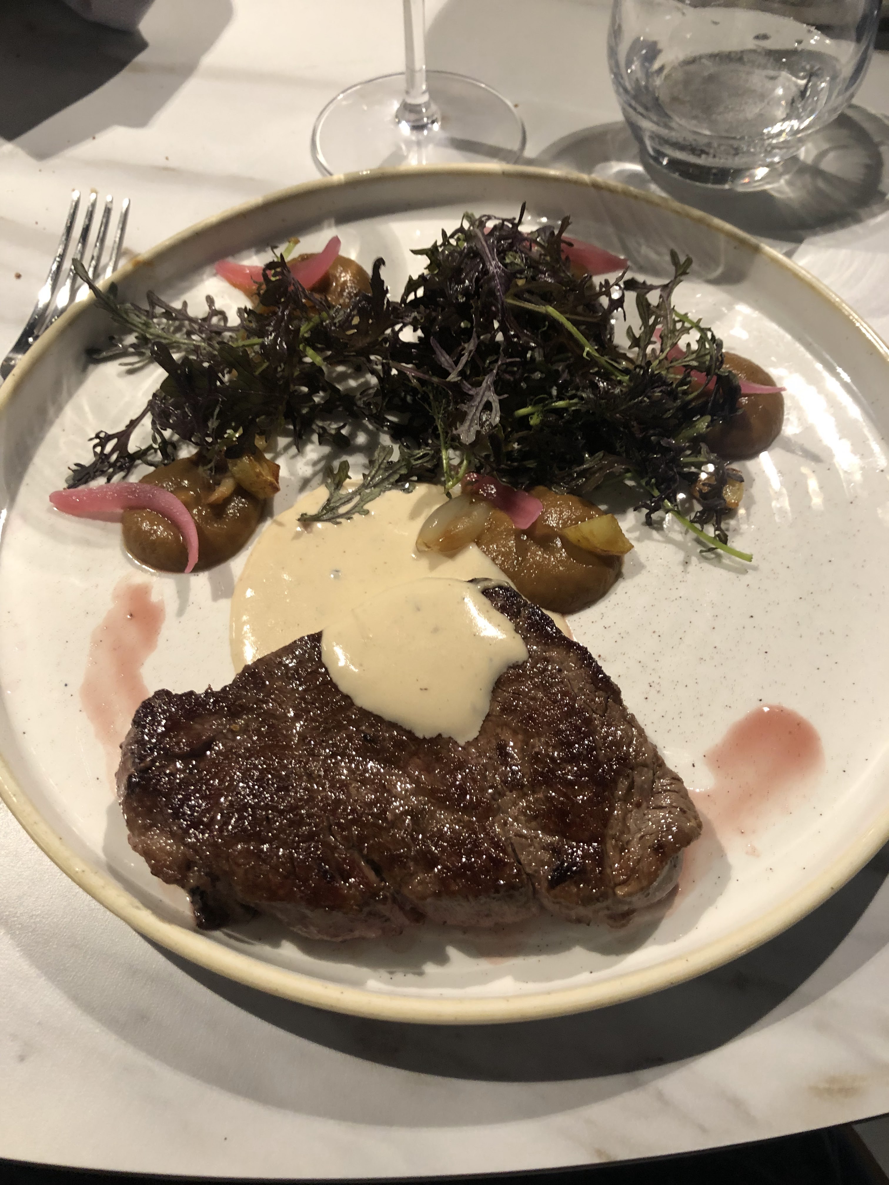 Restaurant magnifique, les plats étaient très bons mais quantités un peu limite sur la pièce de bœuf servie sans accompagnement (pas de frites alors qu’il y en a avec le burger) vu le prix. Le serveur était agréable mais quelques oublis.