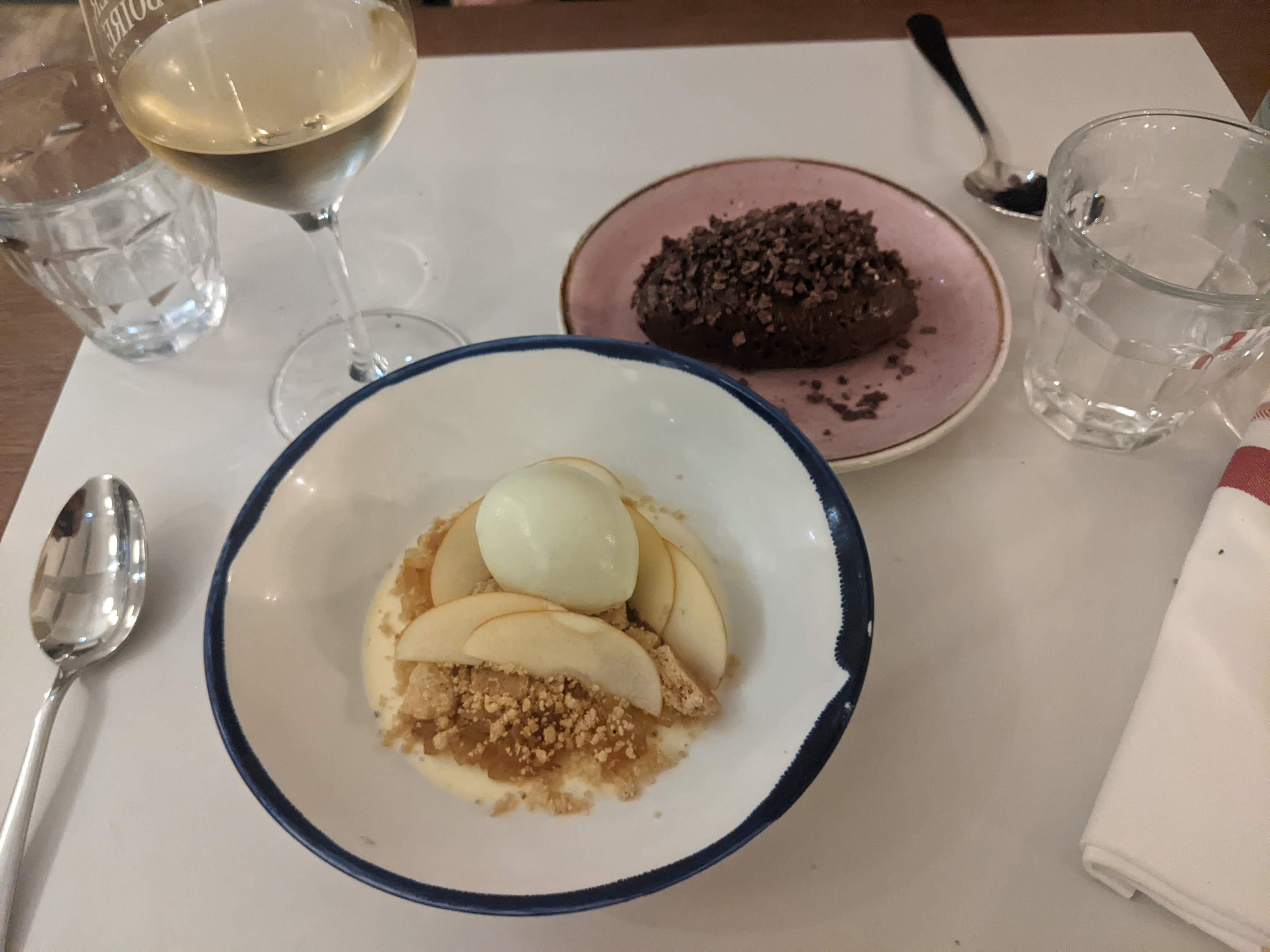 Nous n'avons pas vraiment compris le concept de partager des assiettes qui n'ont vraisemblablement pas été pensées pour être partagées (soupe ou plat en sauce par exemple). Par ailleurs, les assiettes sont peu copieuses et assez onéreuses, bien que les saveurs soient vraiment au rendez-vous. Comptez 60 euros environ par personne pour manger à sa faim, avec un verre de vin. À ce prix là, de nombreux restaurants vous offrent une entrée, un plat et un dessert copieux avec une bouteille à deux. Le service est souriant et agréable au demeurant.