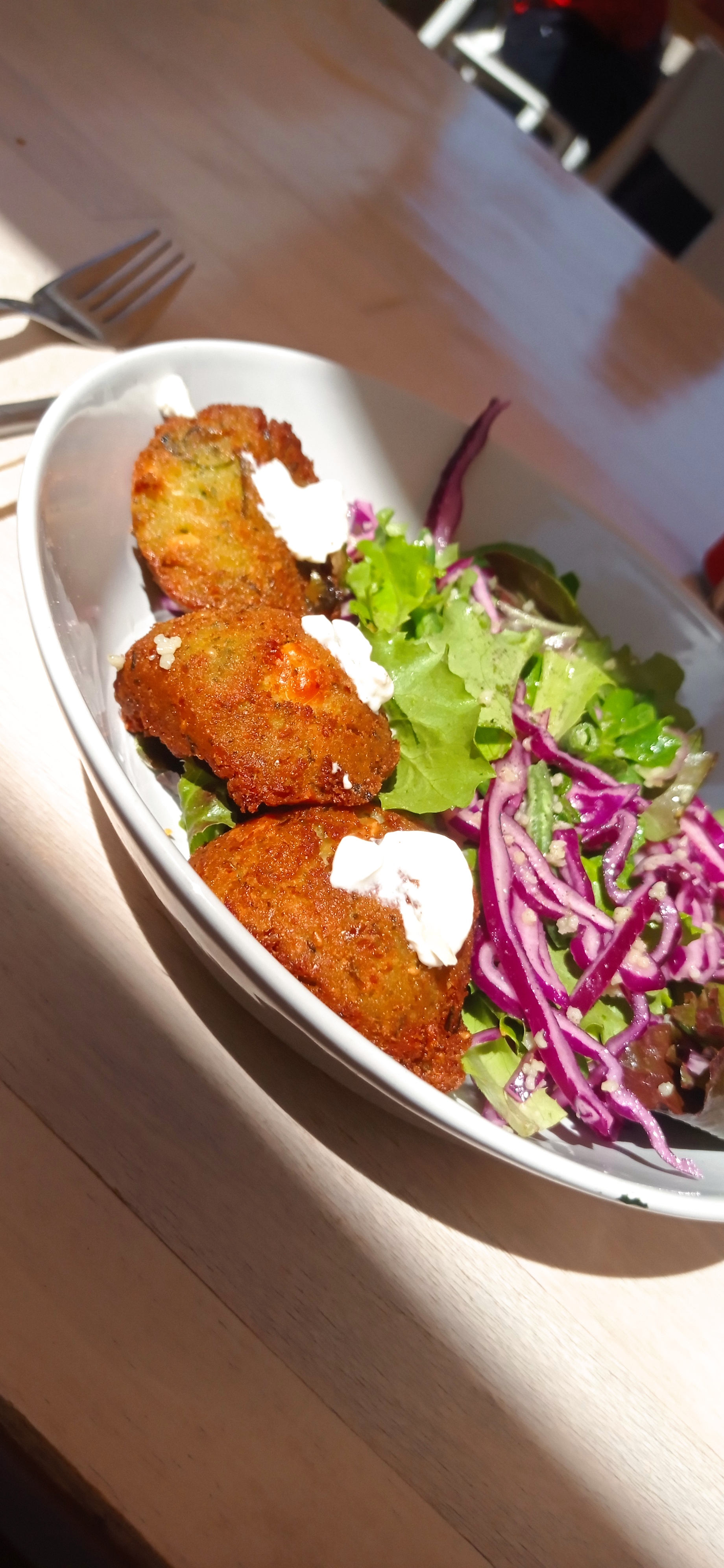 Découvert par hasard au détour d'une balade, j'ai été très bien accueillie par la jeune fille du service. La carte light laisse présager du fait-maison. Des plats avec des épices, des produits de qualité. Elle s'est démenée toute seule à faire le service et déplacer les tables quand les clients demandaient d'être à l'ombre, et pas un qui a fait cette demande ne l'a aidée...