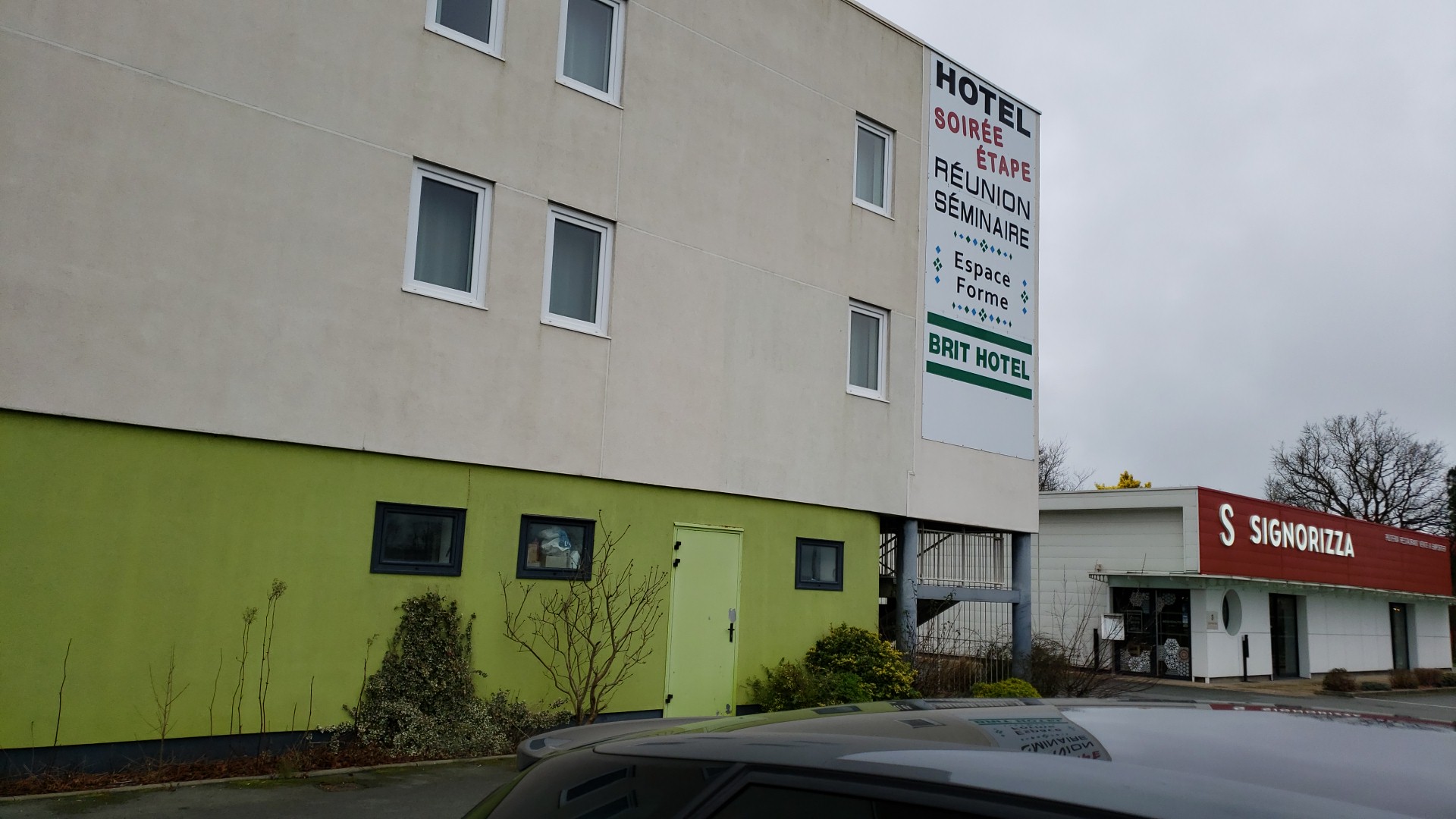 L,hôtel est situé dans une zone industrielle, les fenêtres donnant sur la voie rapide qui va aux Sables d'Olonne. Ca n'est pas vraiment gênant car les chambres sont très bien insonorisées. Mais un peu de verdure, de fleurs et des arbres paysagers pourraient rendre cet endroit bien plus accueillant.