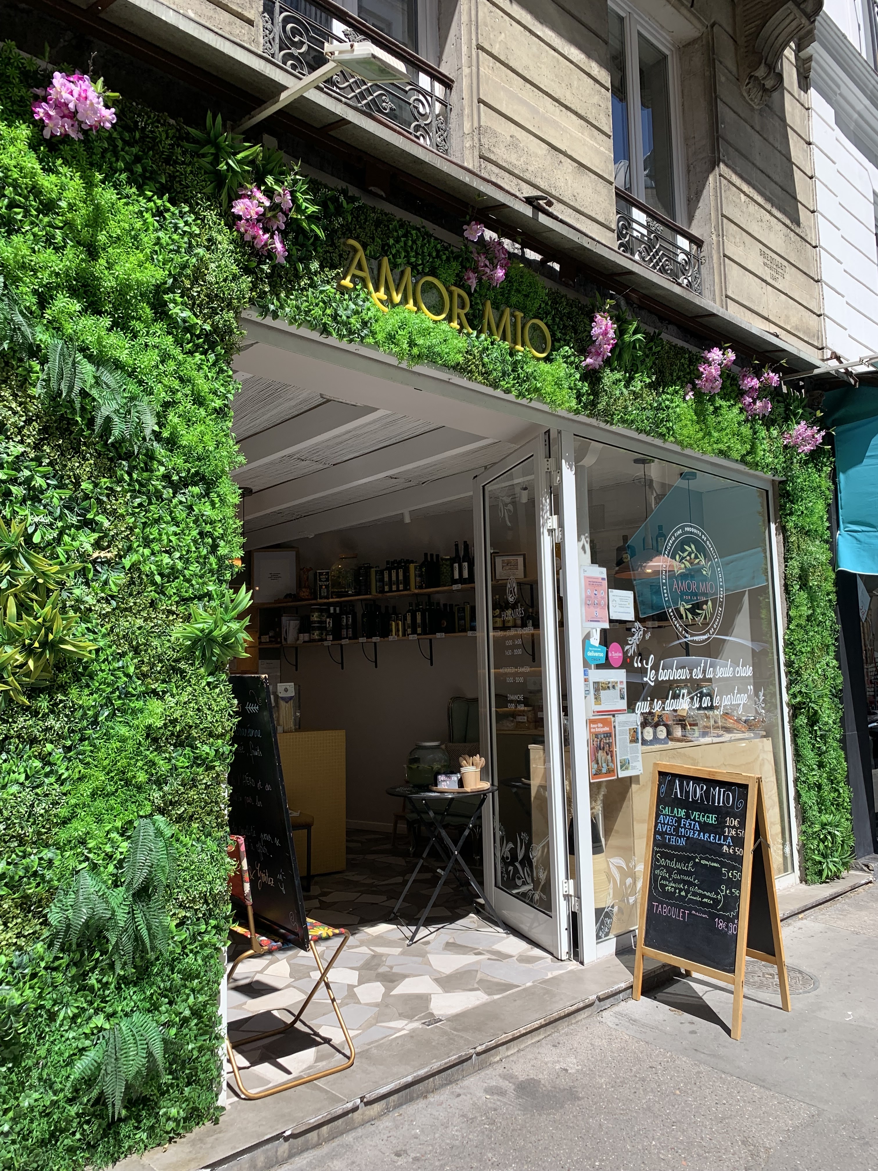 Nous cheminions dans les rues de Paris en direction de Montmartre, après avoir visité le musée Grevin, une averse soudaine et surtout une fringale motivante nous a fait pousser la porte d'Amor Mio. Coucous pour tout le monde et malgré mon appétence vegan, je me suis laissé tenter par quelques merguez en plus... Super expérience les enfants et les grands se sont régalés, ambiance sympathique et très bons produits.