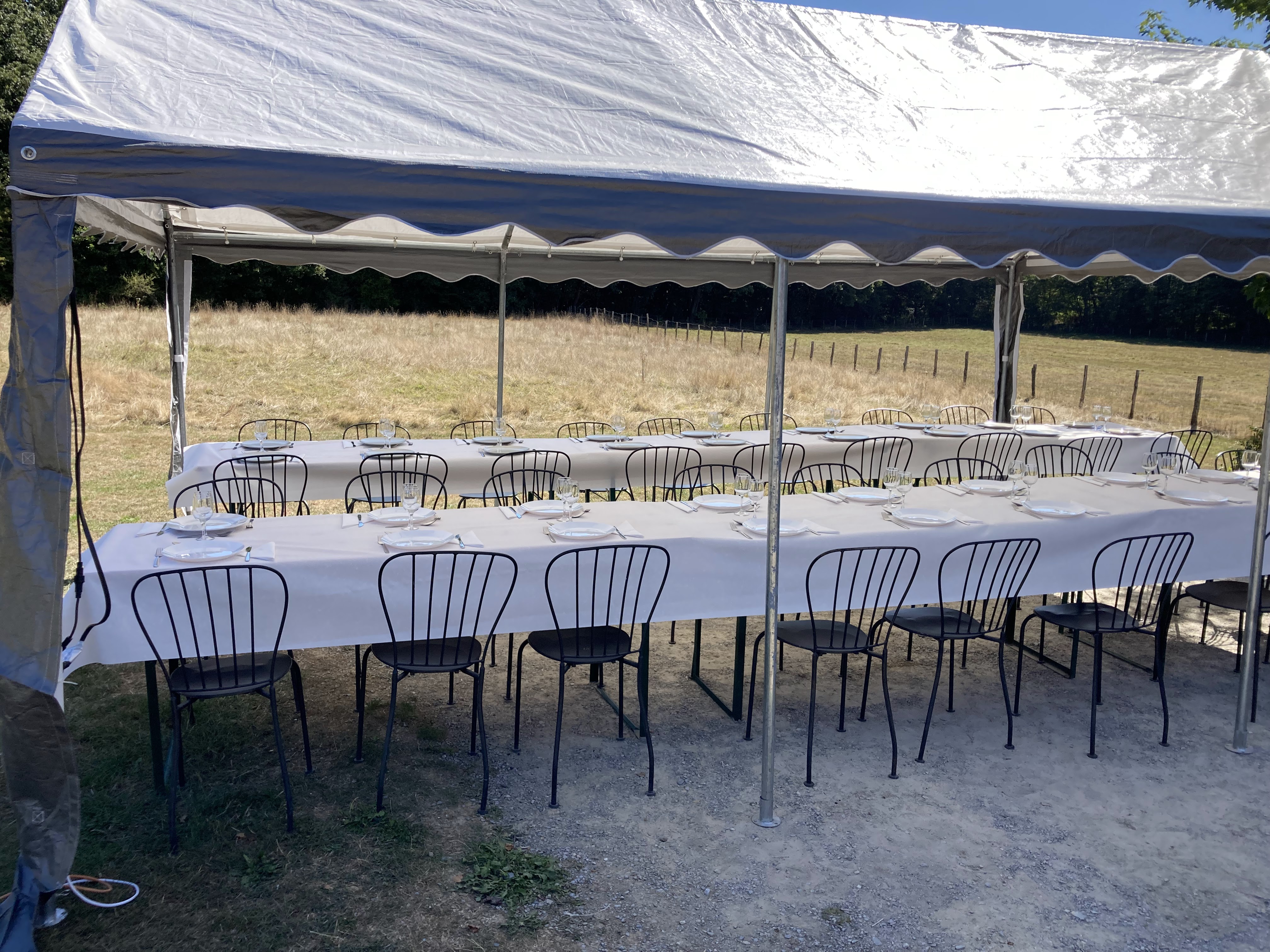 Nous avons loués le gîte Ruchot et ses 70 couchages. Belle salle avec baies vitrées, les tables à l'extérieur sont un plus. Nous avons pu louer, sur place, la sono DJ et la tireuse à bière. Pour la partie traiteur, nous avons eu que des retours positifs (quantité un peu excessive concernant la paëlla) et les invités ont adorés les desserts (Légende d'automne et Irwin en photo). Le lendemain, nous avons pris l'option Brunch qui a été appréciée par les invités, avant de reprendre la route. Merci à Benjamin et à Marine qui ont su répondre à nos requêtes.