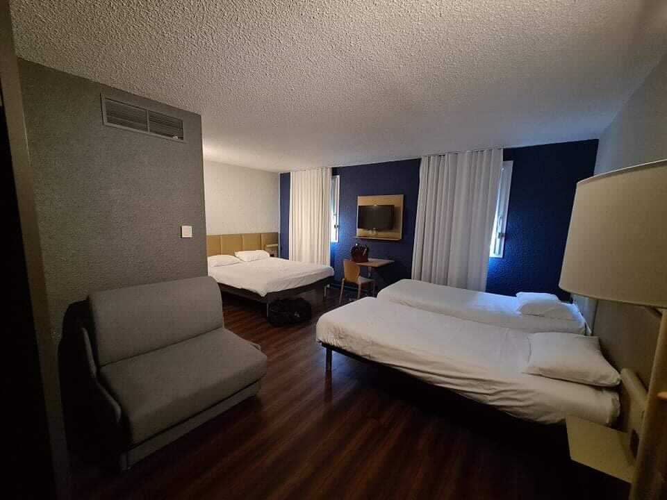 Chambre agréable et jolie MAIS le descriptif mentionnait une grande salle de bain, en réalité, elle est petite et mal adaptée et surtout pas rénovée contrairement à la chambre. Nous avons réservé pour quatre avec deux enfants, et ils ont dû dormir ensembles (mal) dans un canapé convertible. Ce n'était pas reposant pour eux. Si je devais revenir dans ce type d'hôtel, je m'assurerai qu'il y'a bien trois lits et une vraie salle de bain Jon une cabine de douche!