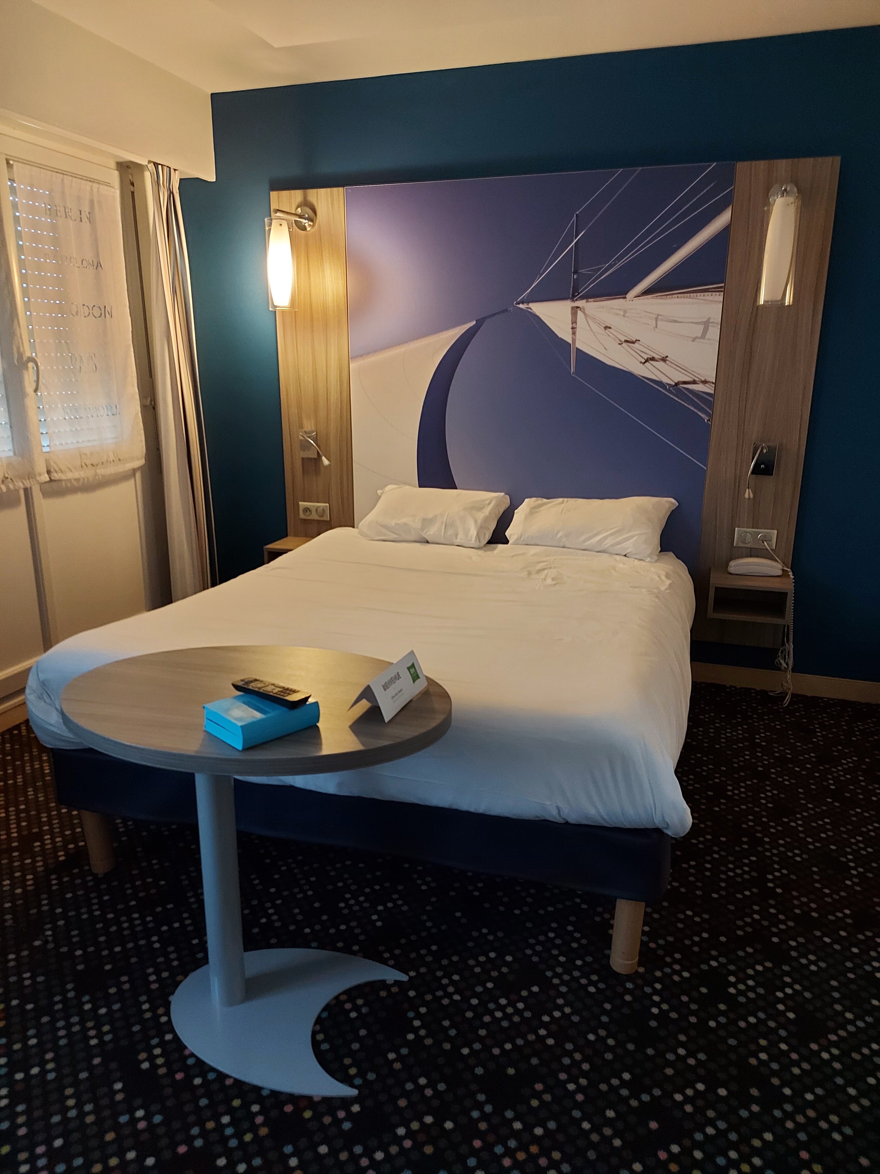 Ttes bien situé. Proche de tout ( ville ,port,rue piétonne etc...) Personnels agréables et accueillants. Chambre reposante et très propre lit confortable, salle de bain spacieuse. Petit déjeuner frais , très copieux et proposant un large choix avec pour mon plaisir une machine pour jus d orange frais 😍. Les petits hic sont les doubles rideaux qu il faudrait occultant car soleil très tôt dans la chambre et les prises électriques à la tête du lit visible et celle de la TV qui sont toute deux casi dénudé. J ai du tiré le lit par sécurité. Et le parking qui est accessible qu avec supplément du coup pour trouvé une place c est pas évident. Picsine fermé pourtant pas de réduction sur le tarif .