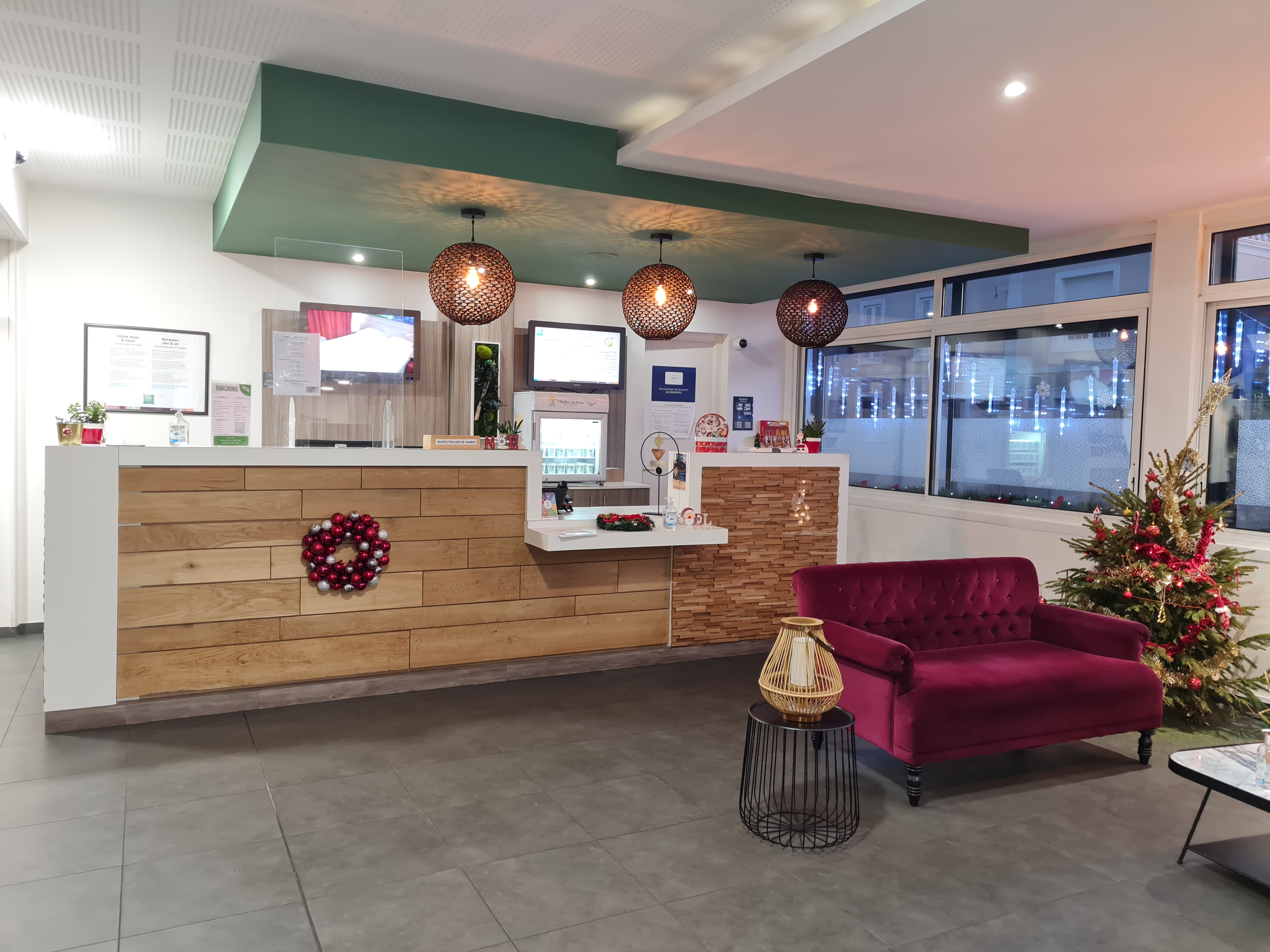 Accueil de qualité. Chambre propres et décoré selon les nouvelles couleurs de l'enseigne. Piscine couverte et salle de réunion