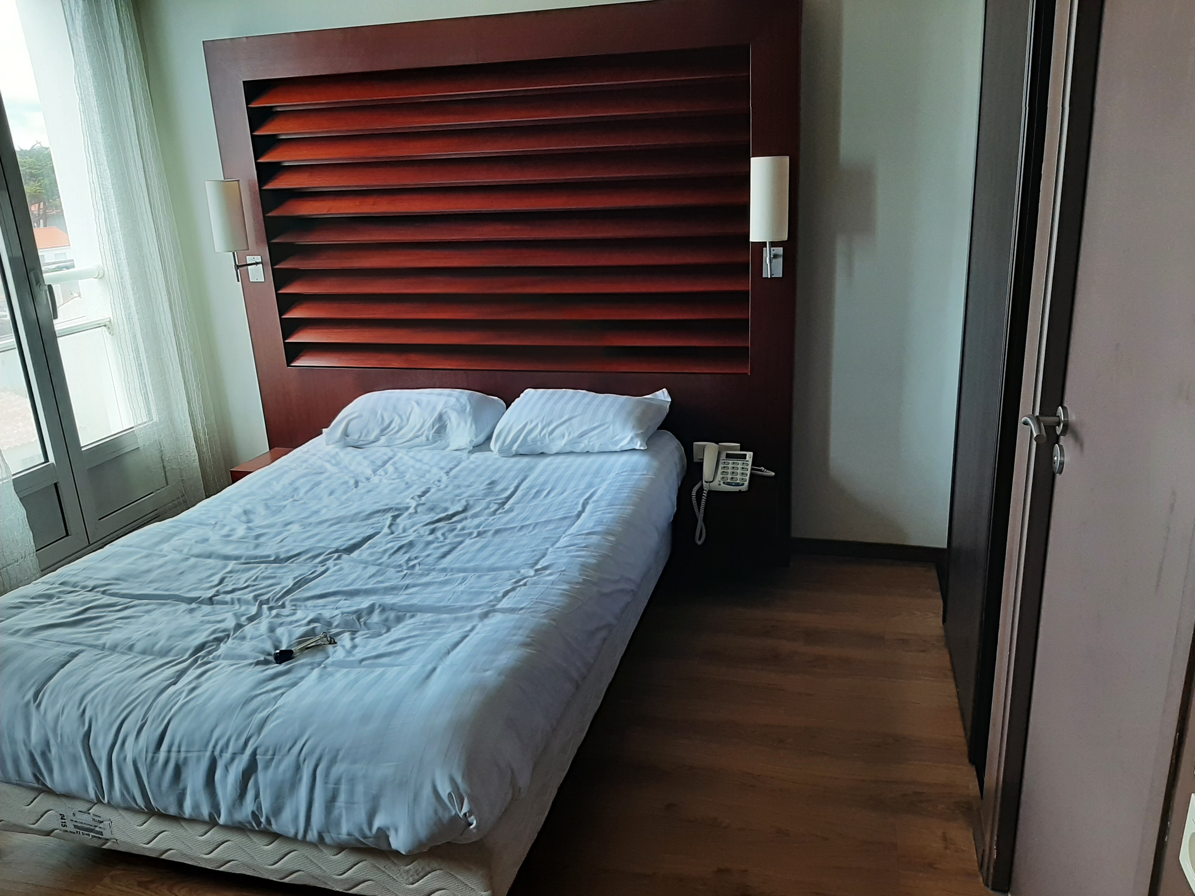 Bel hotel, avec des chambres de qualités ( chambre latéral avec vue sur la mer tout de même), bonne literie, clim, insonorisation correct, petit déjeuné plutôt complet ( manque charcuterie et oeuf, simple affaire de gout pour ma part), prix correct. La localisation est top a mi chemin entre saint gille croix de vie et saint jean de mont, possibilité de tout faire a pied ou a velo. Le plus un parking privée a 6 euros la journée. Il y a des places gratuites dehors, même en saison, mais c’est confortable de pouvoir charge et décharge la voiture juste au pied de l’ascenseur ! Enfin, le personnel est discret et cordial .
