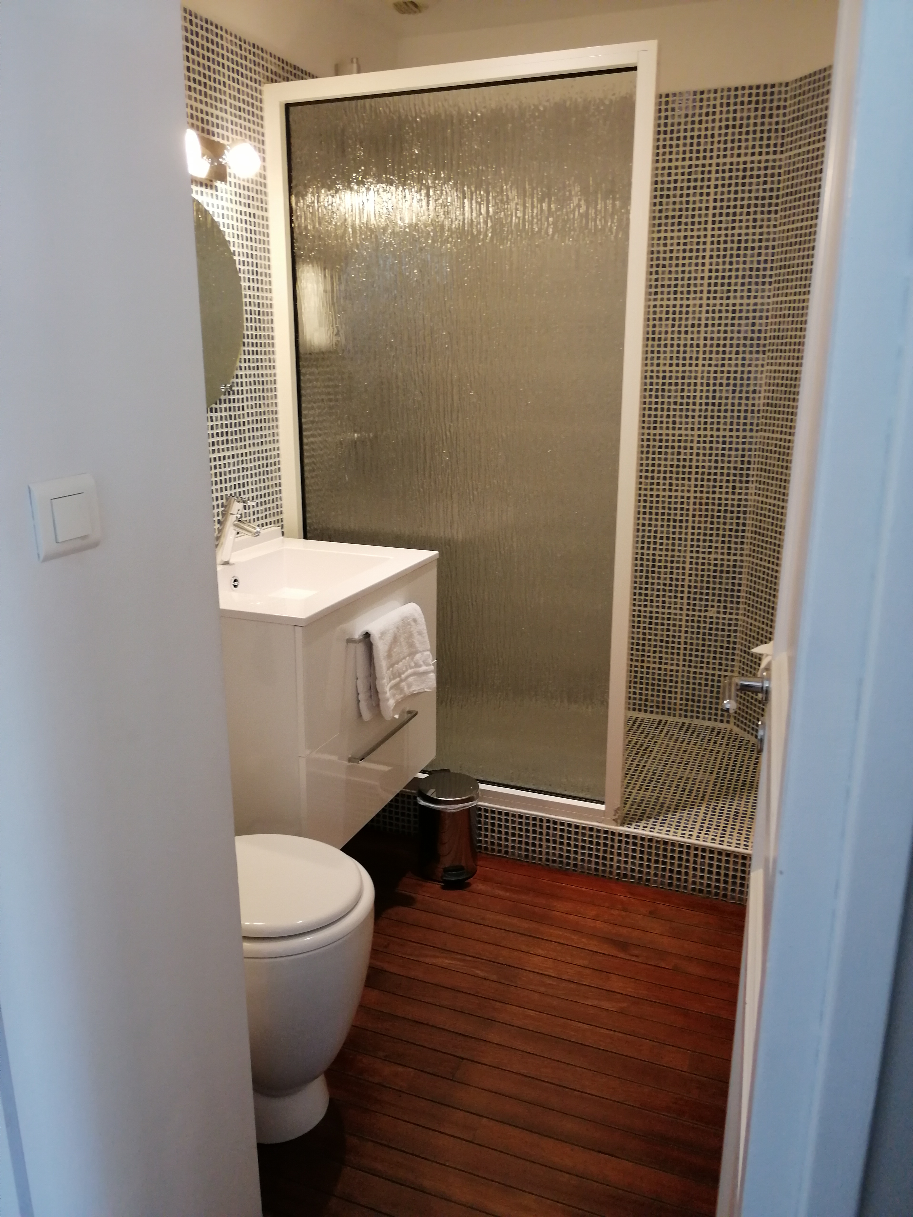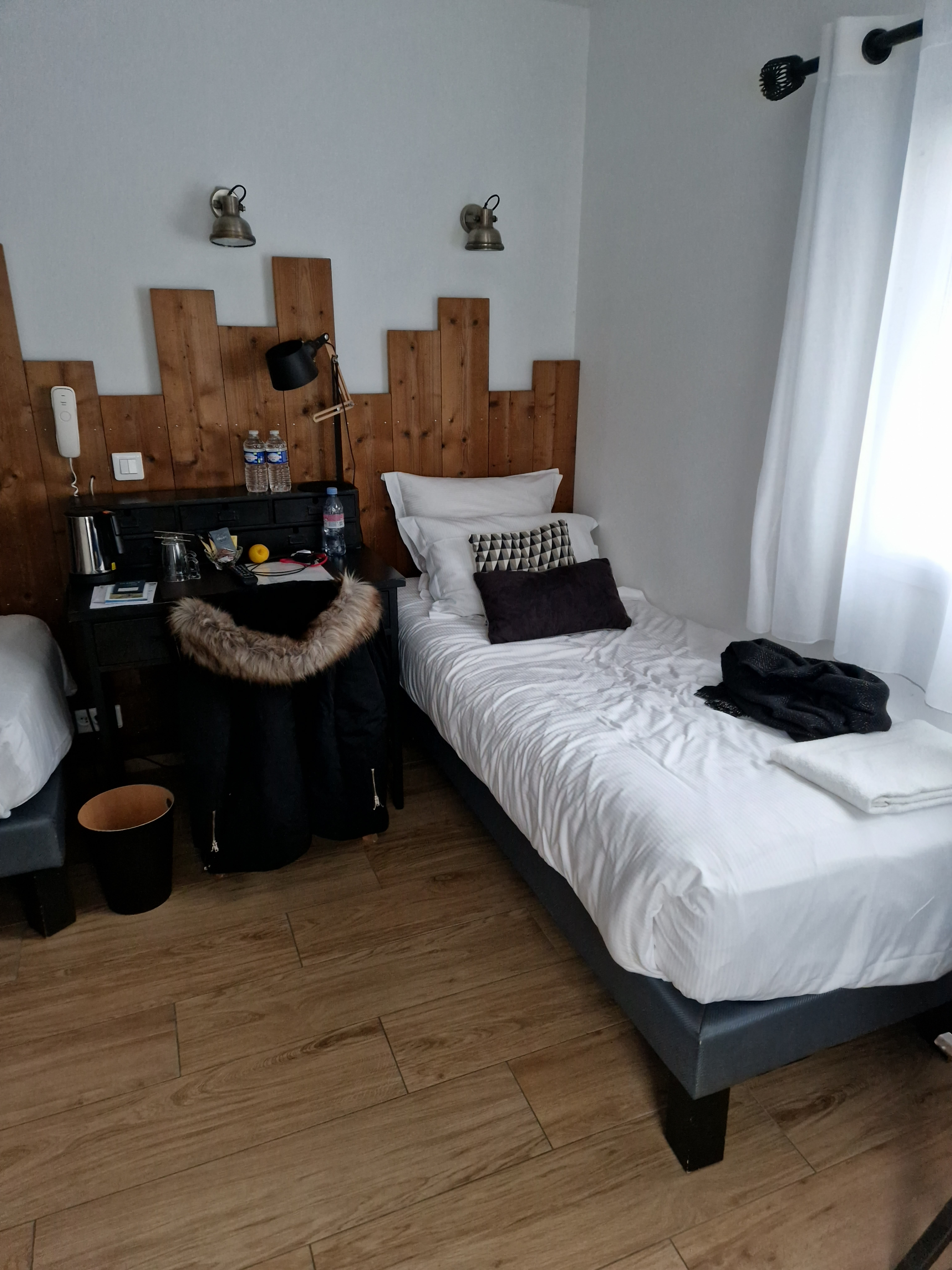 Nous avons passé deux nuits dans cet établissement. La petite chambre tient bien son nom, elle est petite mais tout y est. La salle de bain mériterait une réfection quand même, il manque des patères, pas de porte ou rideau à la douche, la peinture du plafond qui s'écaille ... Dommage pour une chambre à ce prix. Par contre hôtel très bien situé, parking 'g fermé gratuit mais pas grand , accueil très sympathique, très bon conseils à l'arrivée et petit déjeuner au top. Dans l'ensemble c'est une bonne adresse.