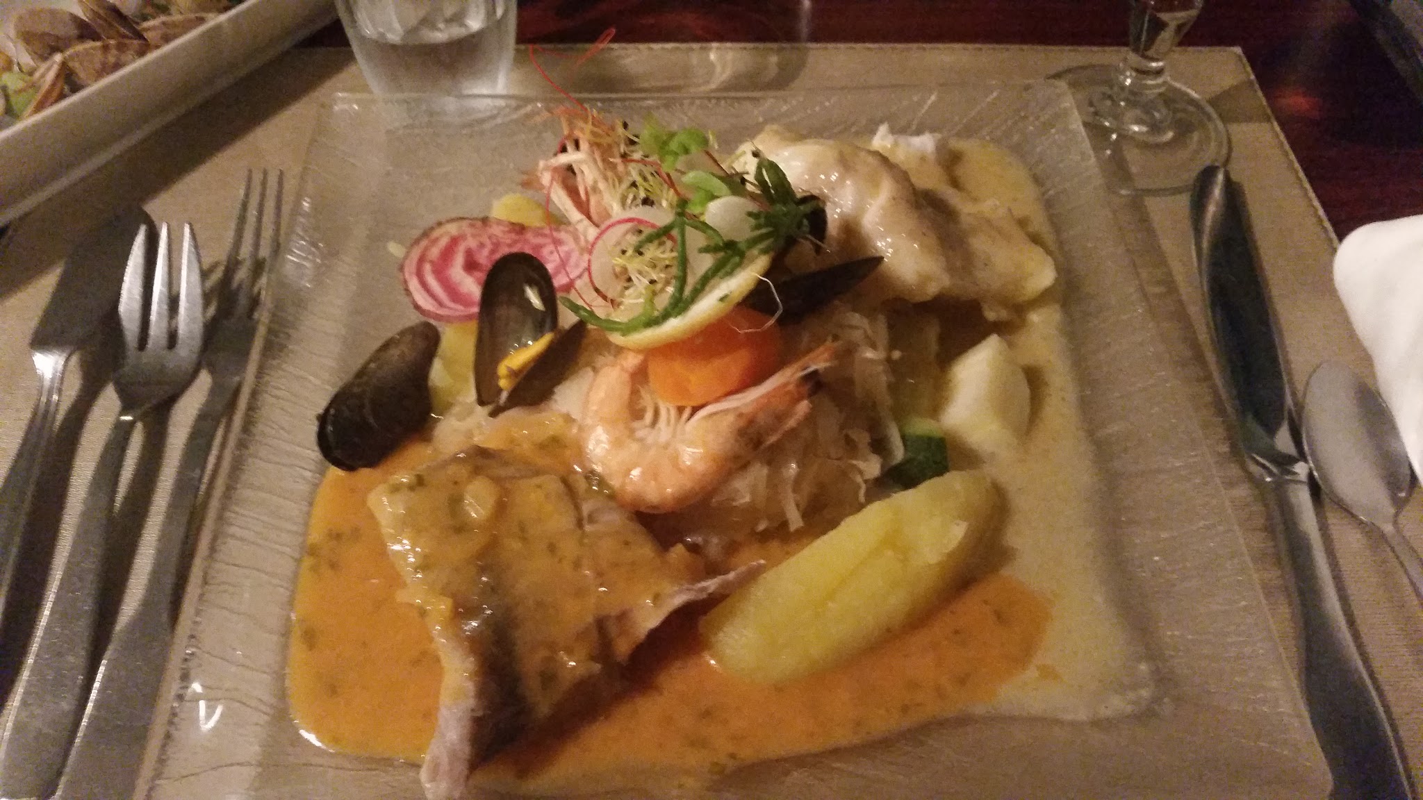 Buffet des entrées correct, poisson délicieux, dessert moins bien un peu simpliste