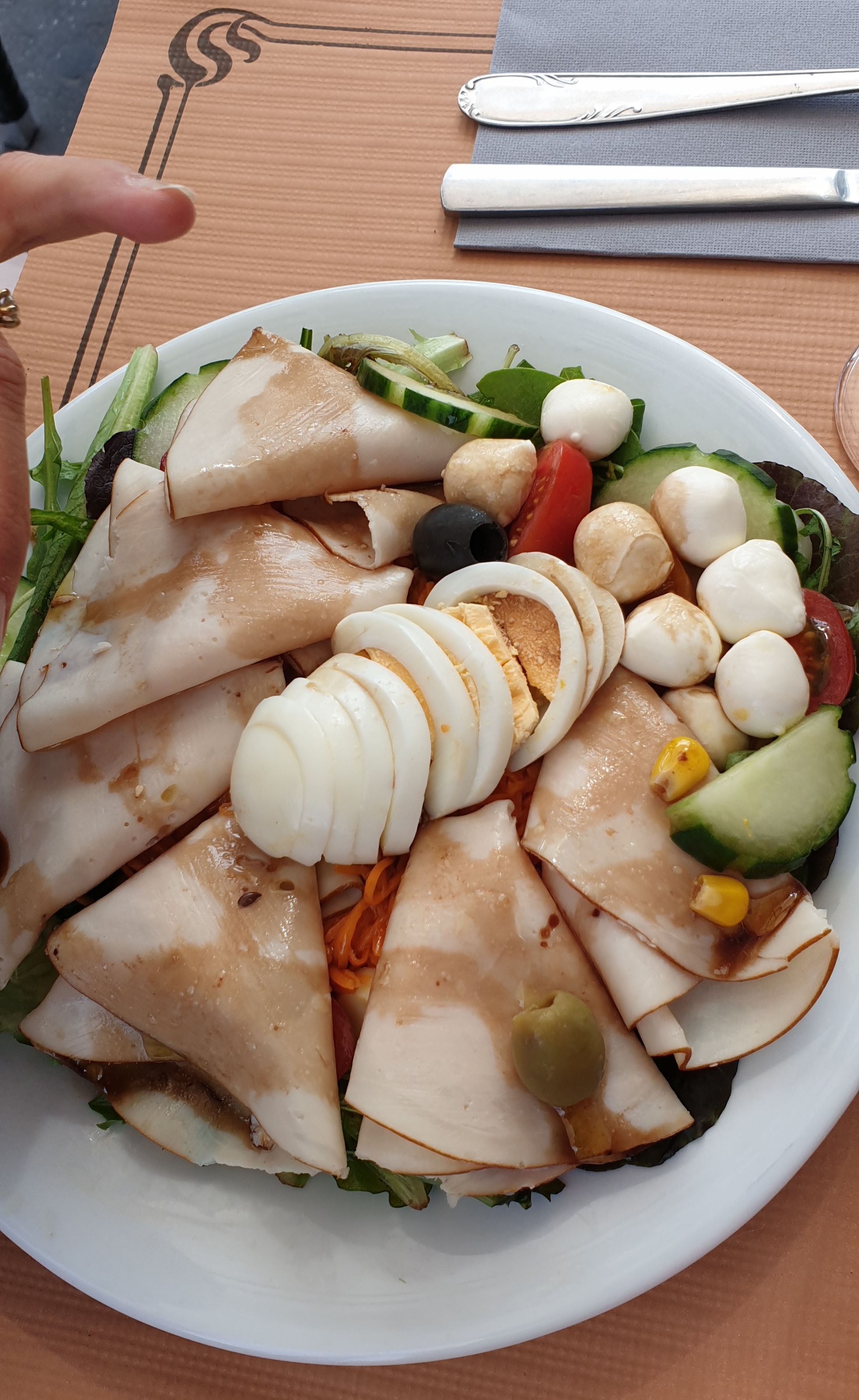 J ai pris une formule grande salade un peu chère 12.80 avec dessert et boisson mais d une fraîcheur incomparable les tomates cerises sont bien fermes et fraiches . Salade au poulet hypergarnie ,on peut facilement manger à deux personnes dessus ...ravie