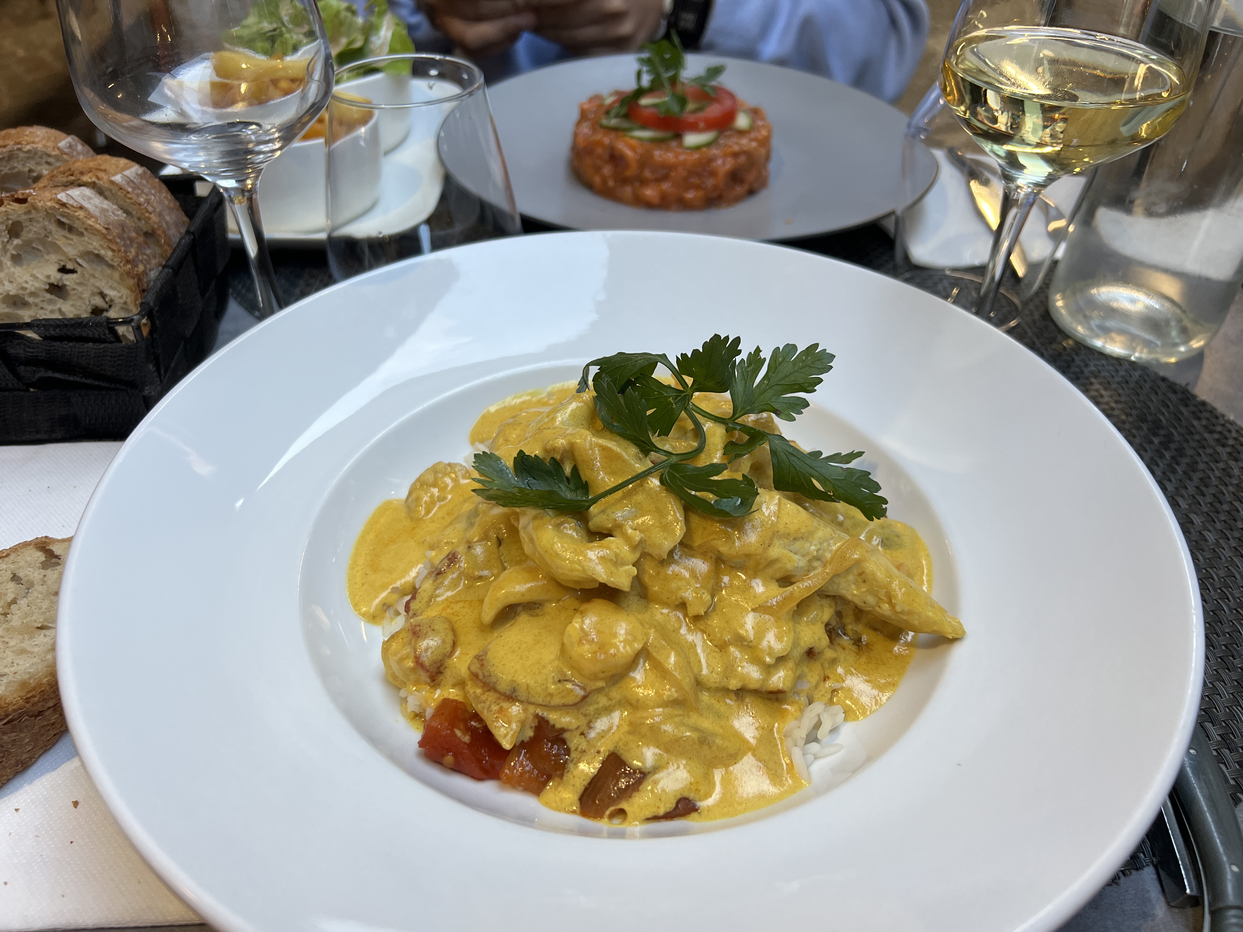 Lors d'une visite à Annecy, comme d'habitude, j'ai décidé de déjeuner tôt avant que les restaurants ne soient bondés. J'ai choisi La Cuisine des Amis car ils avaient plusieurs plats du jour qui ont retenu notre intérêt. Commandé la Bouillabaisse de Cabillaud et le poisson local en sauce à la crème. À peine 15 minutes après que nous nous sommes assis, la foule au restaurant des Amis et dans les restaurants avoisinants a commencé à grossir. Nous sommes chanceux. La Bouillabaisse était très bonne. Le poisson était frais. Le goût de la sauce qui l'accompagnait était une bonne combinaison. Bien qu'Annecy soit très populaire, la plupart des restaurants proposent des prix raisonnables. J'ai eu de la chance jusqu'à présent en ce qui concerne les repas. Dieu de la nourriture (s'il y en a un) doit nous sourire. 😁. Merci.