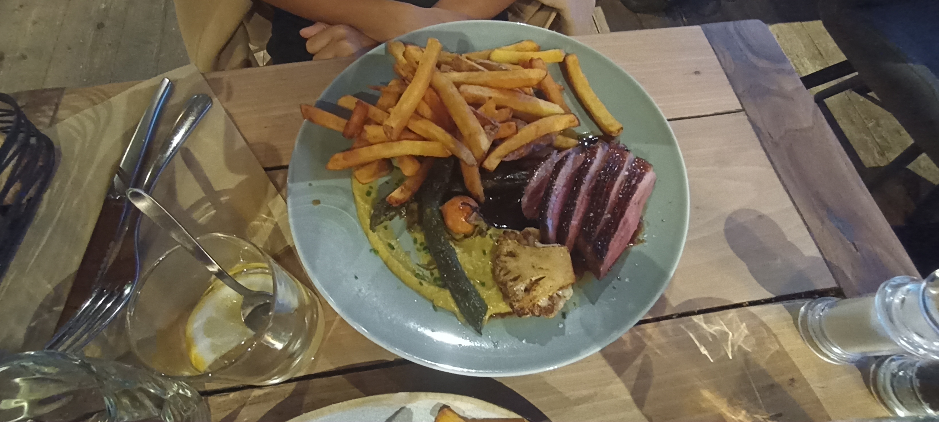 Restaurant très sympa, la viande est délicieuse les frites maison aussi, les cocktails sont très bon aussi, bref un très bon restaurant