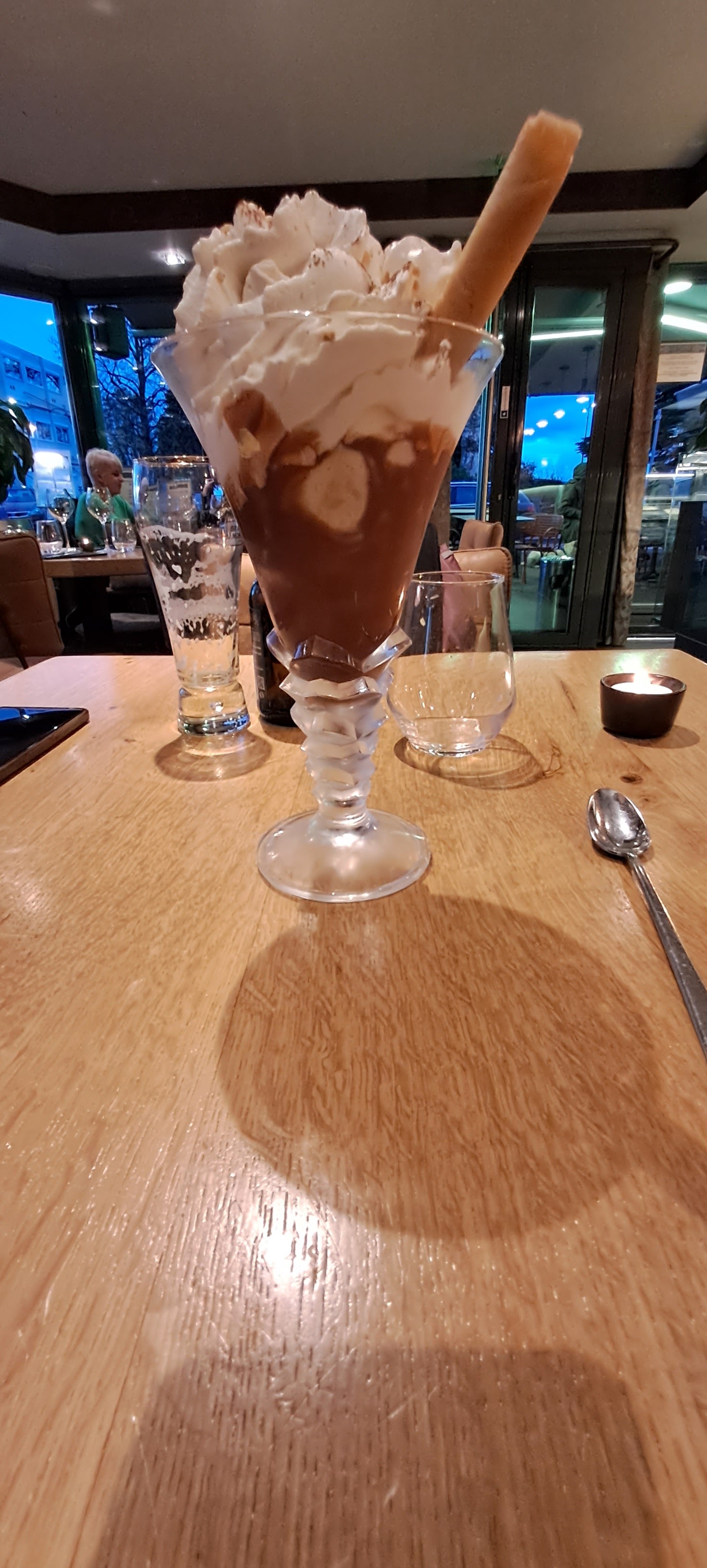 Pour tout dire, une envie de coupe de glace nous est apparue au alentour des 23h. Après avoir cherché un endroit désespérément pour en déguster une, nous sommes tombées par hasard sur ce bel établissement. Personnel accueillant, souriant et opérationnel. Coupes de glaces copieuses, bon rapport qualité prix. Je reviendrai pour essayer le côté salé. Encore un grand merci