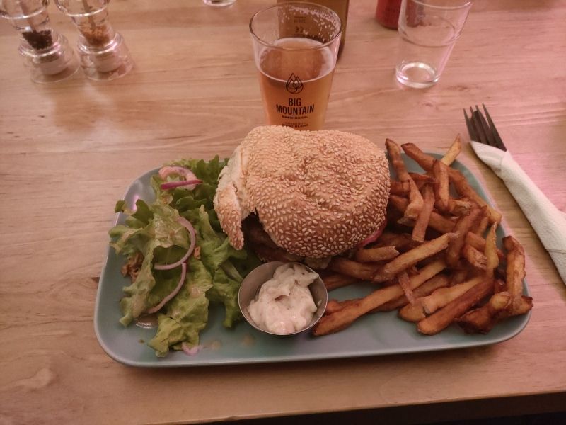 Venu y loger pour une course de vélo, je ne pensais pas y manger à la base mais l' ambiance détendue, les gérants sympathiques et les prix corrects m'ont fait changer d'avis : Quelle bonne Idée, le burger était excellent avec un bon vrai steak Angus de 150g et une sauce top. J'y retournerai peut-être après la course 🤗