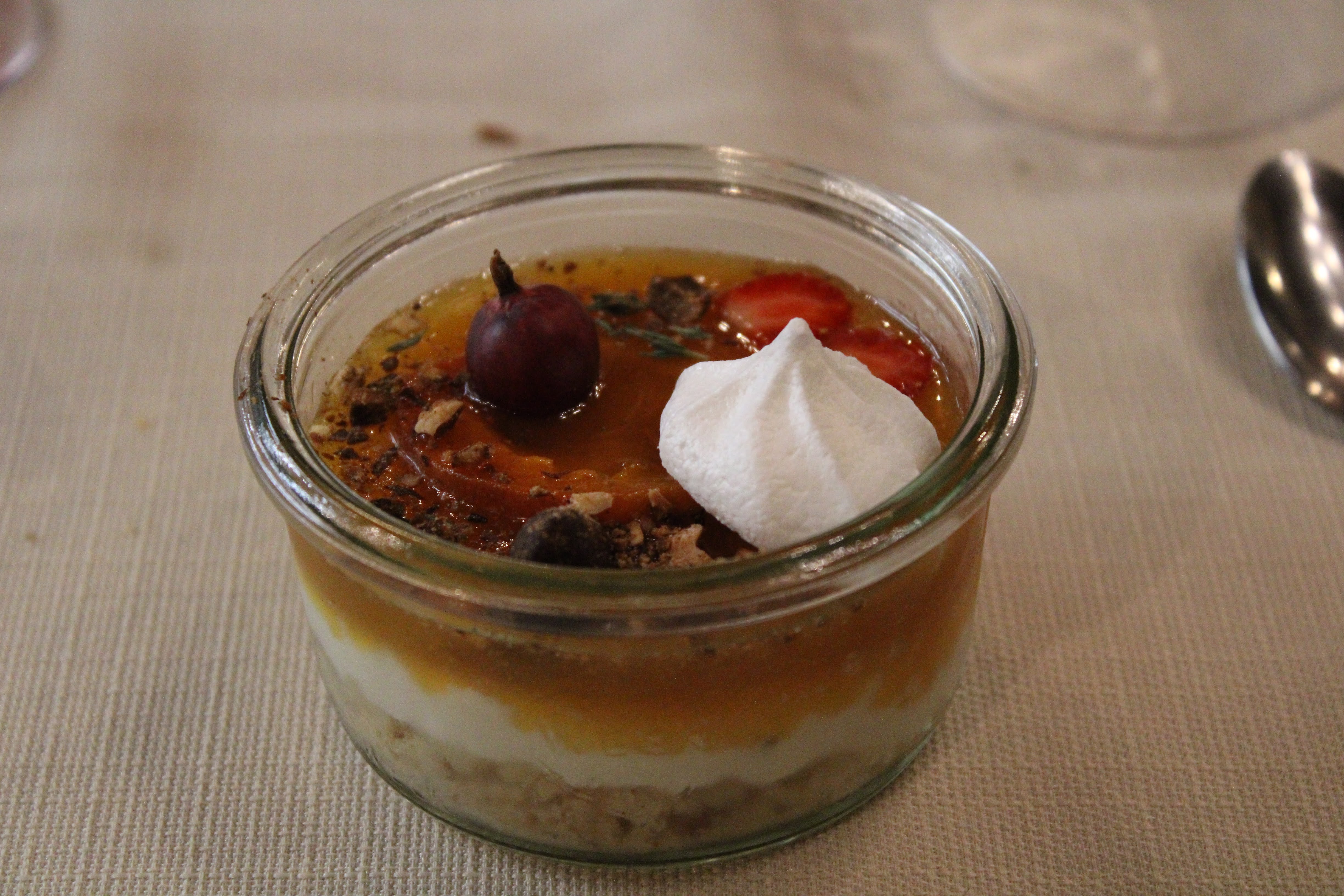 Concept sous verre qui veut dire tout est servi dans un pot de fleur. Les nourritures sont mélangés, visuel décevant. Quant au dessert, crémeux au citron tellement plein de beurre, que l'mpossible de le manger. Dressage peut être convenable pour l'emporter mais pas pour déguster sûr place. Déçue.
