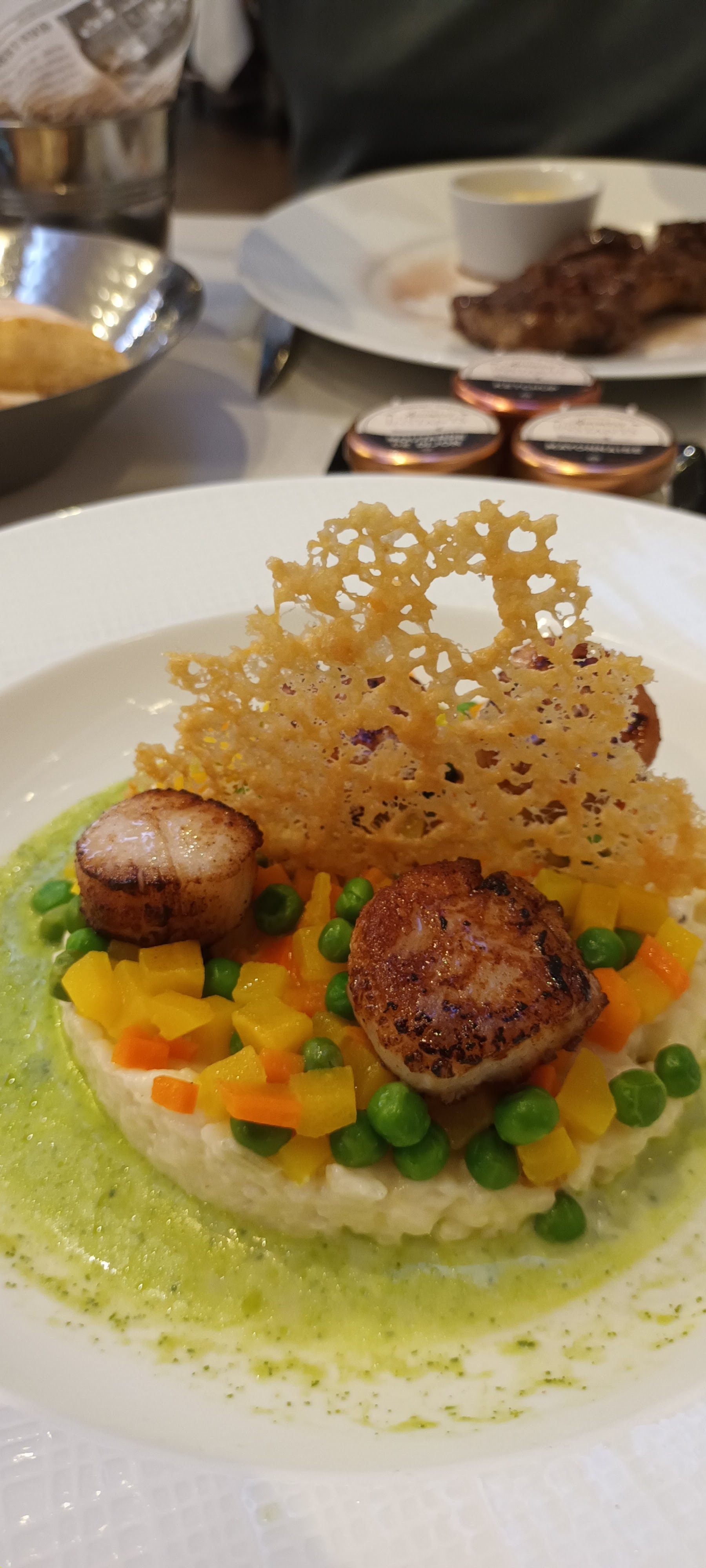 Après avoir bien jouer au casino nous avons décider de manger au riva. Service au top personnel vraiment agreable. Mais pour de ce qui est de la cuisine vraiment limite velouté froid foccacia froide la tranche de pain imbibé et pour ma part pas une vrai foccacia entre le tartare qui manque réellement d’assaisonnement et le risottos qui manque de chaleur et plutôt fade en goût je suis vraiment déçu pour un palace. Je pense tout simplement que les plat sont préparer à l’avance. Vraiment déçu