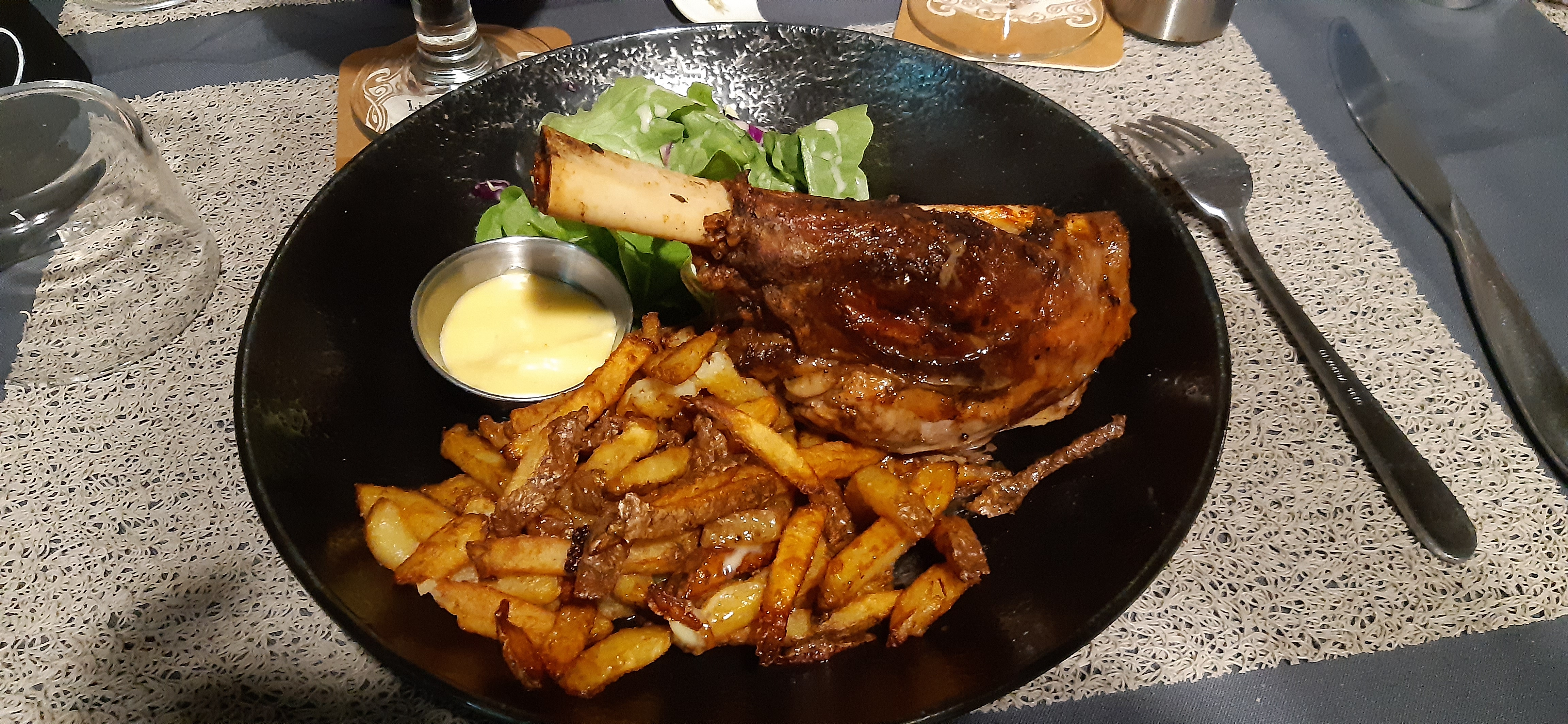 Nous avons choisi cet endroit qui nous correspondait par la bonne humeur des patrons et des serveurs . Les plats sont excellents pour les avoir goûté presque tous et copieux. Le cadre est superbe avec une musique rock and Roll dans des vieilles pierres , du bonheur 💓