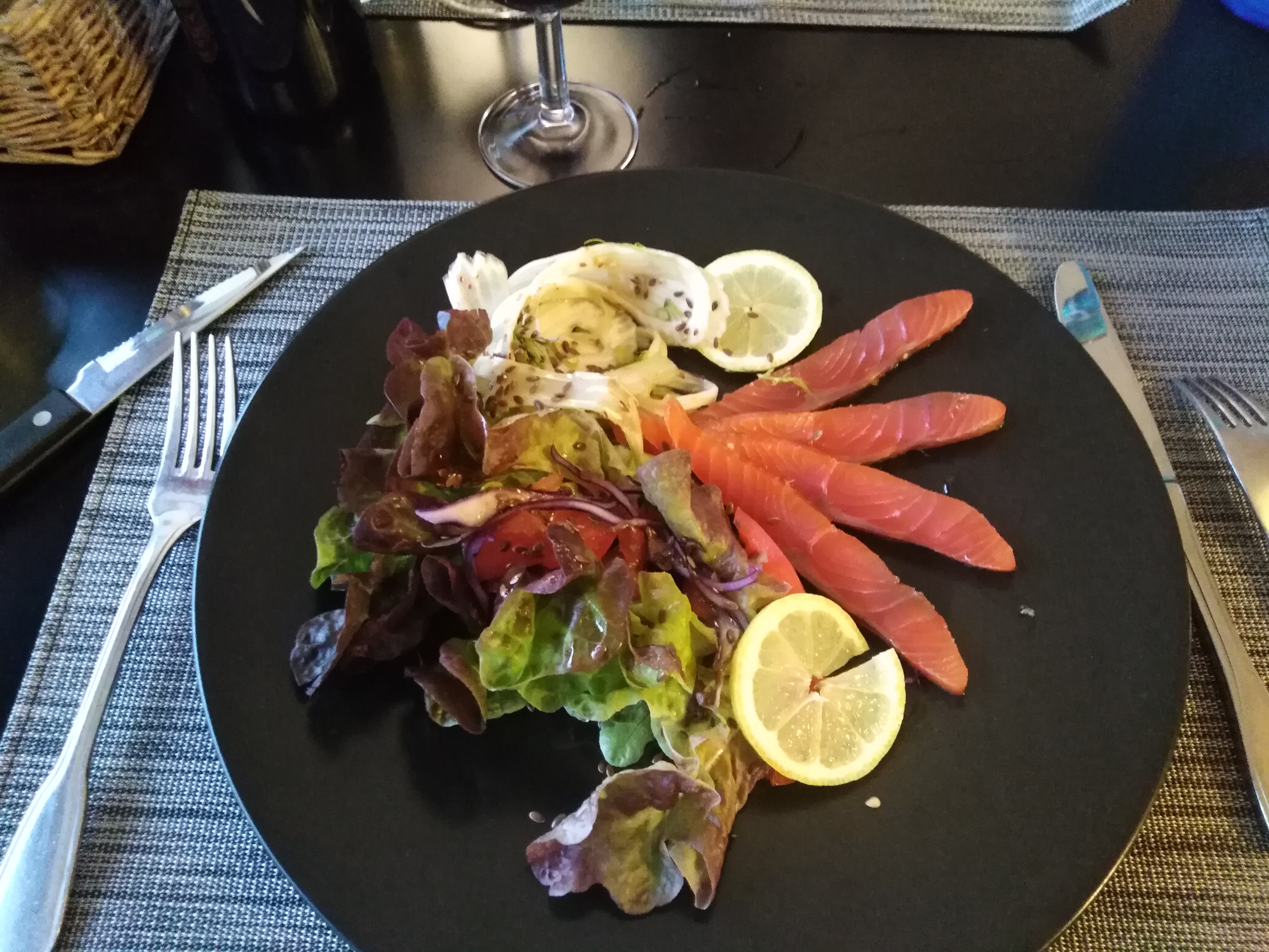 simplement désolé pour mes invités gambas a la thaî ? joues de boeuf calcinées dessus et je m'arrête là. serveur homme sérieux (attentioné ).