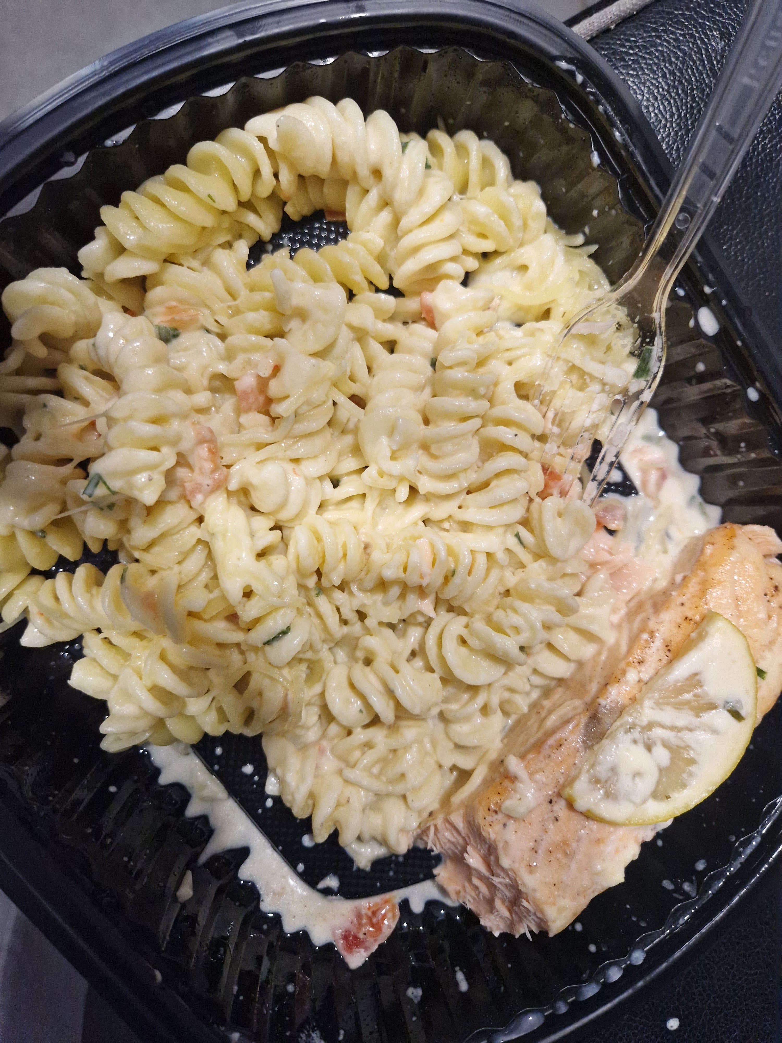 Bonjour C'est bien la première fois que je commande chez eux👌👌👌👌 Je suis Agréablement surprise De la qualité Du plat, Le saumon est hyper frais c'est juste une dingerie, la sauce alors la crémeuse vraiment elle fond en bouche les pâtes cuissons parfaite al dente j'ai vraiment apprécié ce plat merci 🫶🫶🫶🫶désolé j'avais déjà commencer à manger 🫠🫠🫠🫠. Les amis je recommande l'établissement ils sont superbe des produits frais et une portion extrêmement généreuse. Cela mérite 10 étoiles 🌟 🌟 🌟 🌟 🌟 🌟 🌟 🌟 🌟 🌟. Bravo!