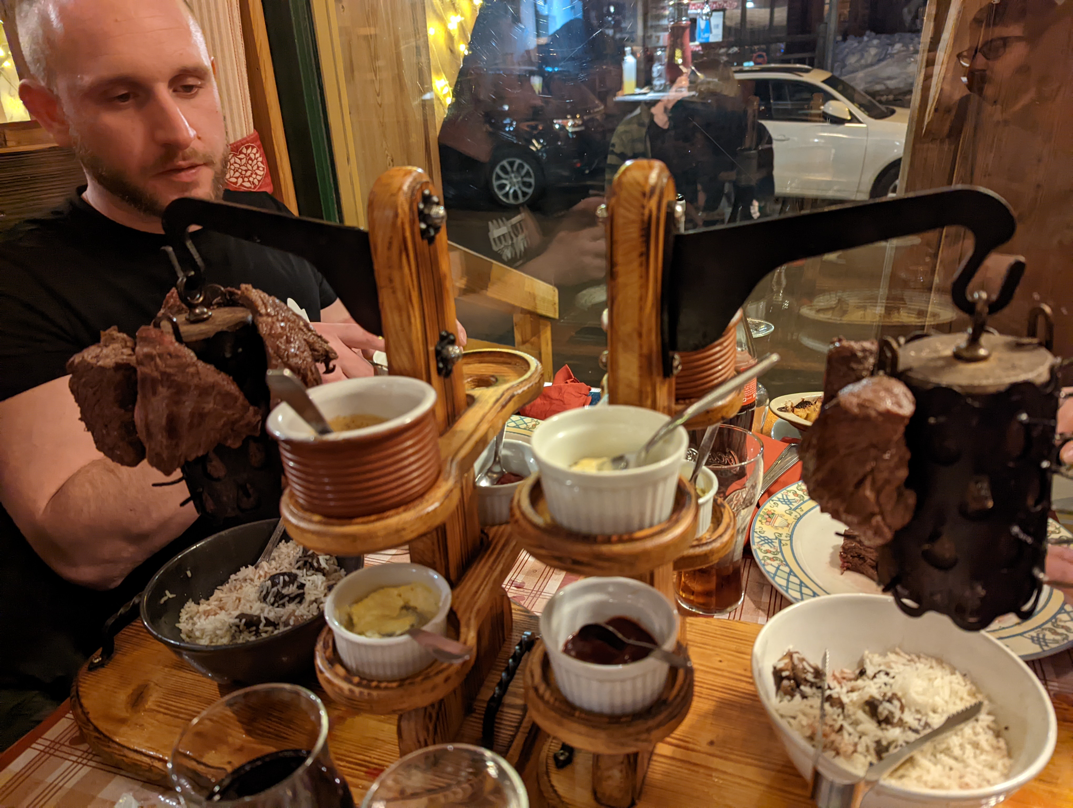 Restaurant typique avec une ambiance de montagne chaleureuse. Nous avons pris (comme à chaque fois) la potence de boeuf ! Un plat à partager qui vaut le détour avec une viande flambée au cognac, des sauces délicieuses, un gratin dauphinois et du riz au champignons. Toujours aussi bon !