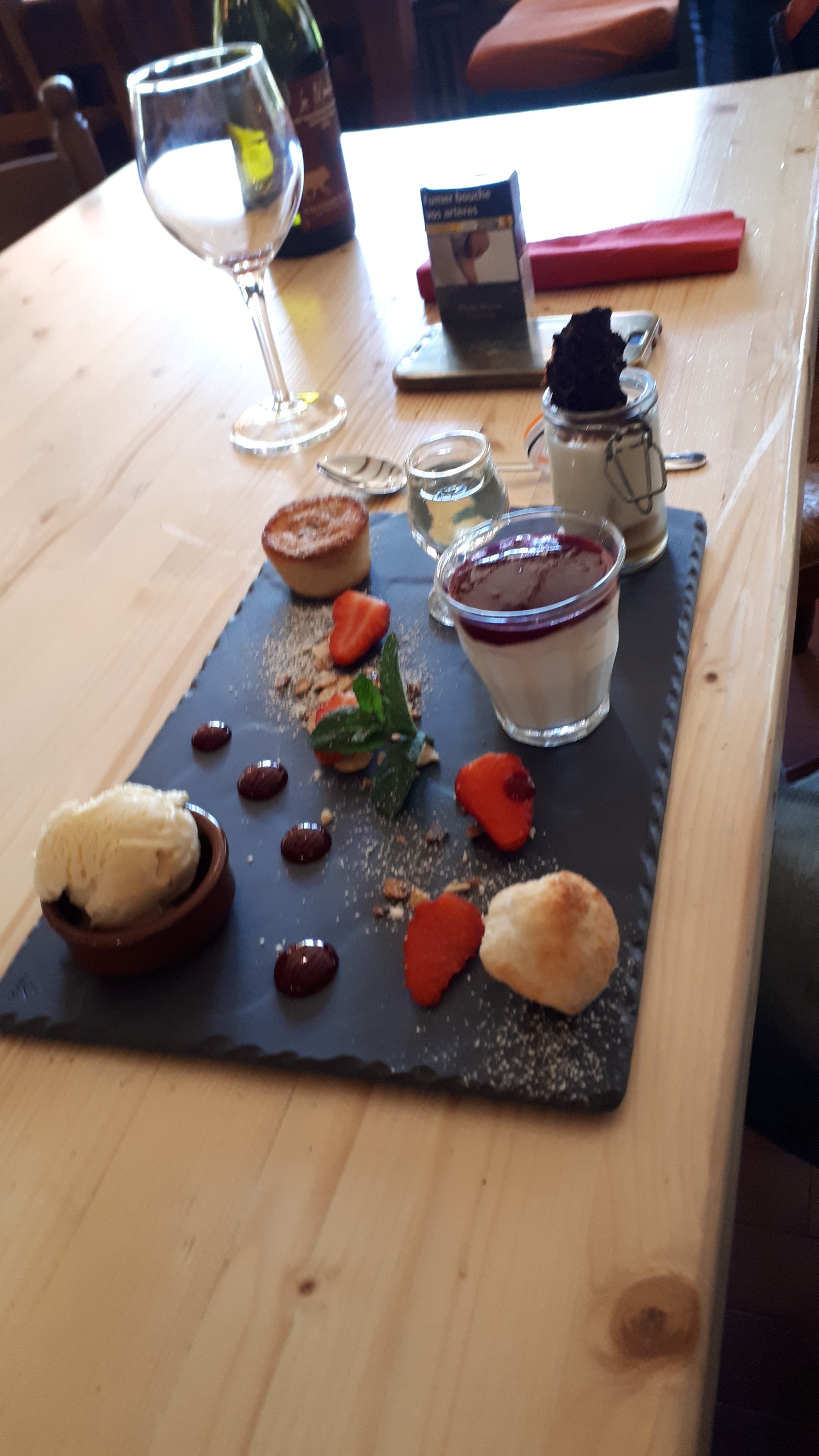 Un regal raclette, tartiflette, desserts tout était tres bon. Personnel super aimable. Deco tres jolies. J adore.