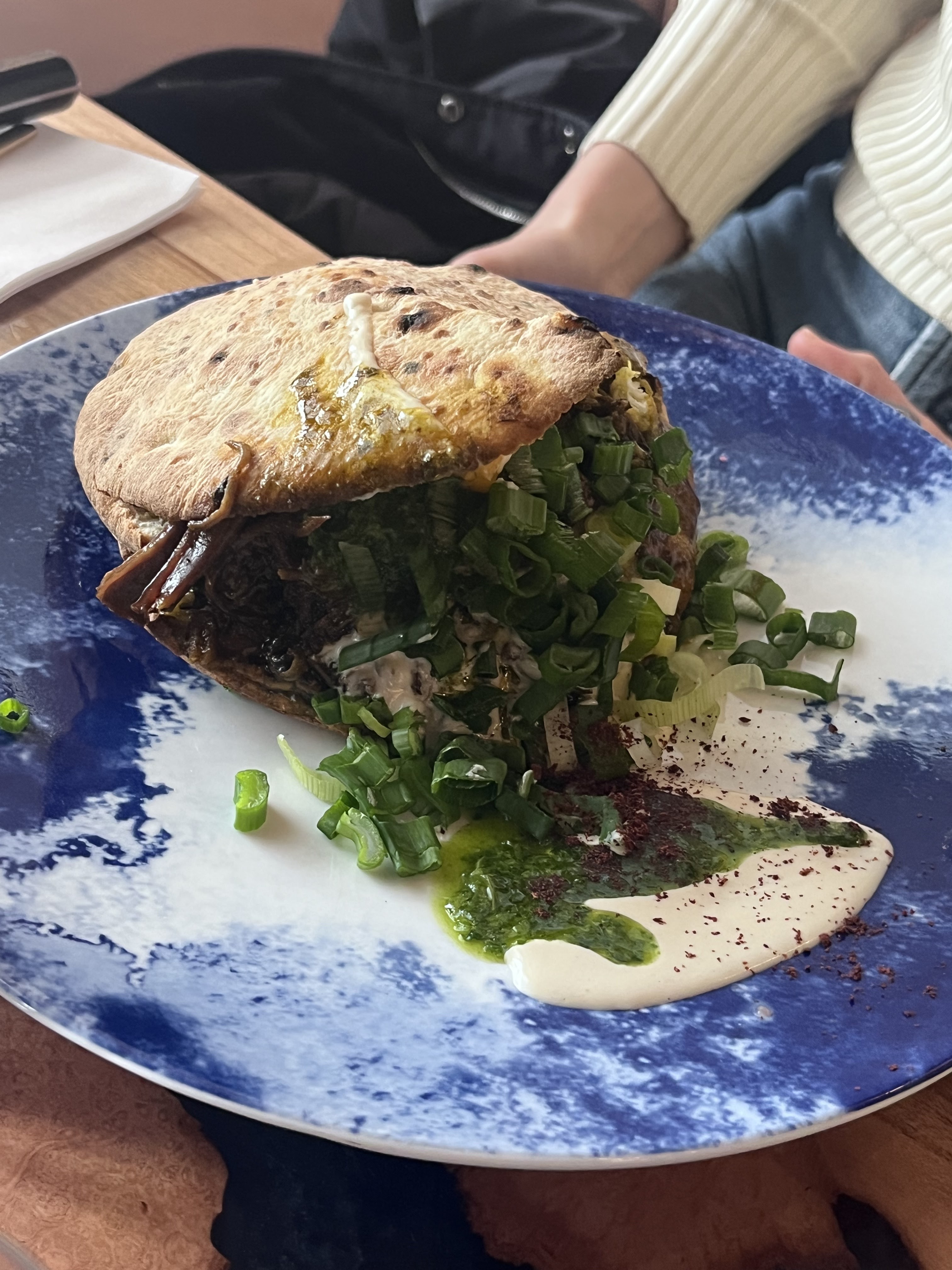 La nourriture est absolument incroyable ! Tout est de très bonne qualité et toutes les épices utilisées s'accordent si bien. Cependant, je ne suis pas un grand fan du pain noir, car j'avais l'impression de manger du charbon, mais c'est peut-être une préférence personnelle, car mon entreprise l'a vraiment apprécié ! Le prix est à mon avis assez élevé, surtout pour les entrées et les desserts, c'est pourquoi nous nous sommes contentés d'avoir un plat principal chacun, qui n'était malheureusement pas très copieux. Il y a cependant un magasin italien juste à côté, qui propose de merveilleux desserts bon marché à emporter, au cas où vous repartiriez avec de la place !