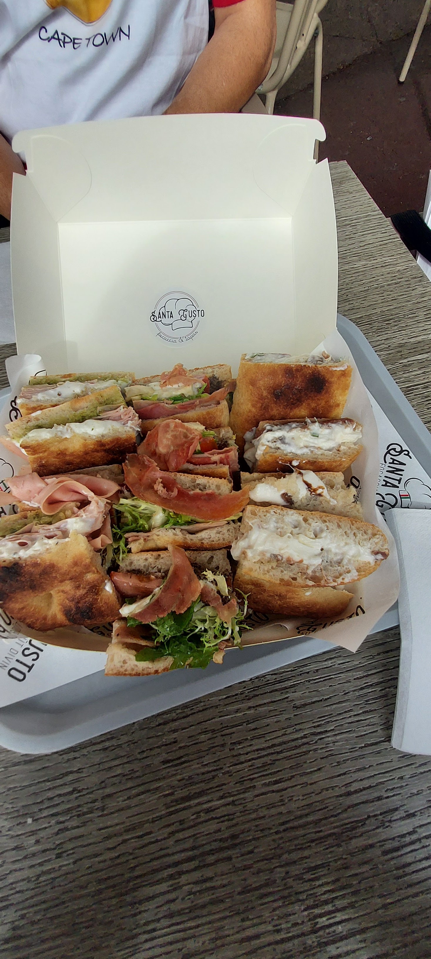 Les foccacia sont toutes aussi bonnes les unes que les autres Croquantes, goûteuses à souhait et très variées Les produits sont top, la préparation est très soignée, j'y retournerai aussi souvent que possible. Bravo à Santa Gusto !!!