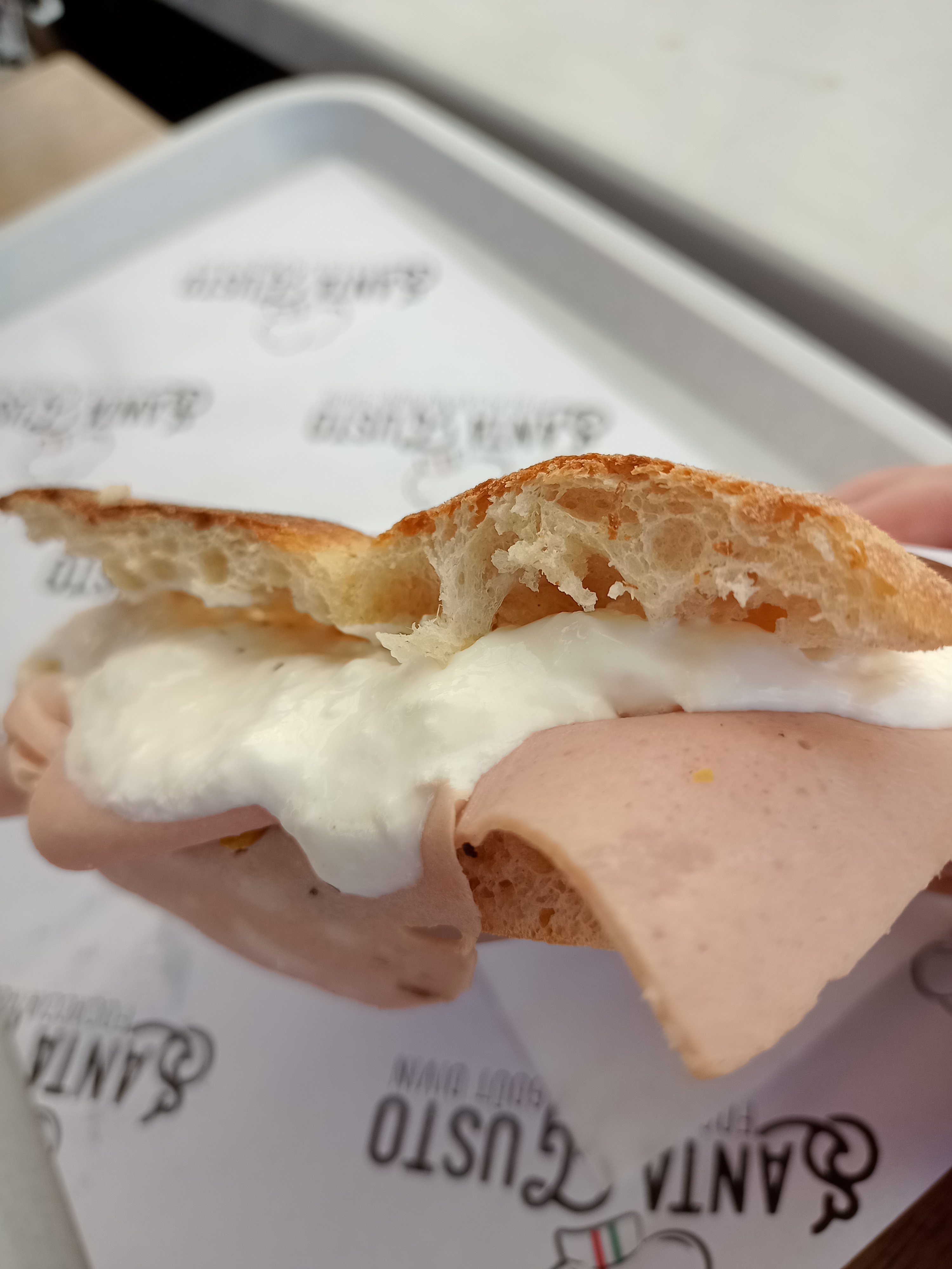 J'ai pris le.burrata avec mortadelle, assez bon . Je trouve que foccacia un peu dur par rapport le version classique de Italie. Mais pourquoi pas avoir ce côté crusti... J'aurai aimer avoir plus de goût de pesto dans la mienne car ça sens pas trop.