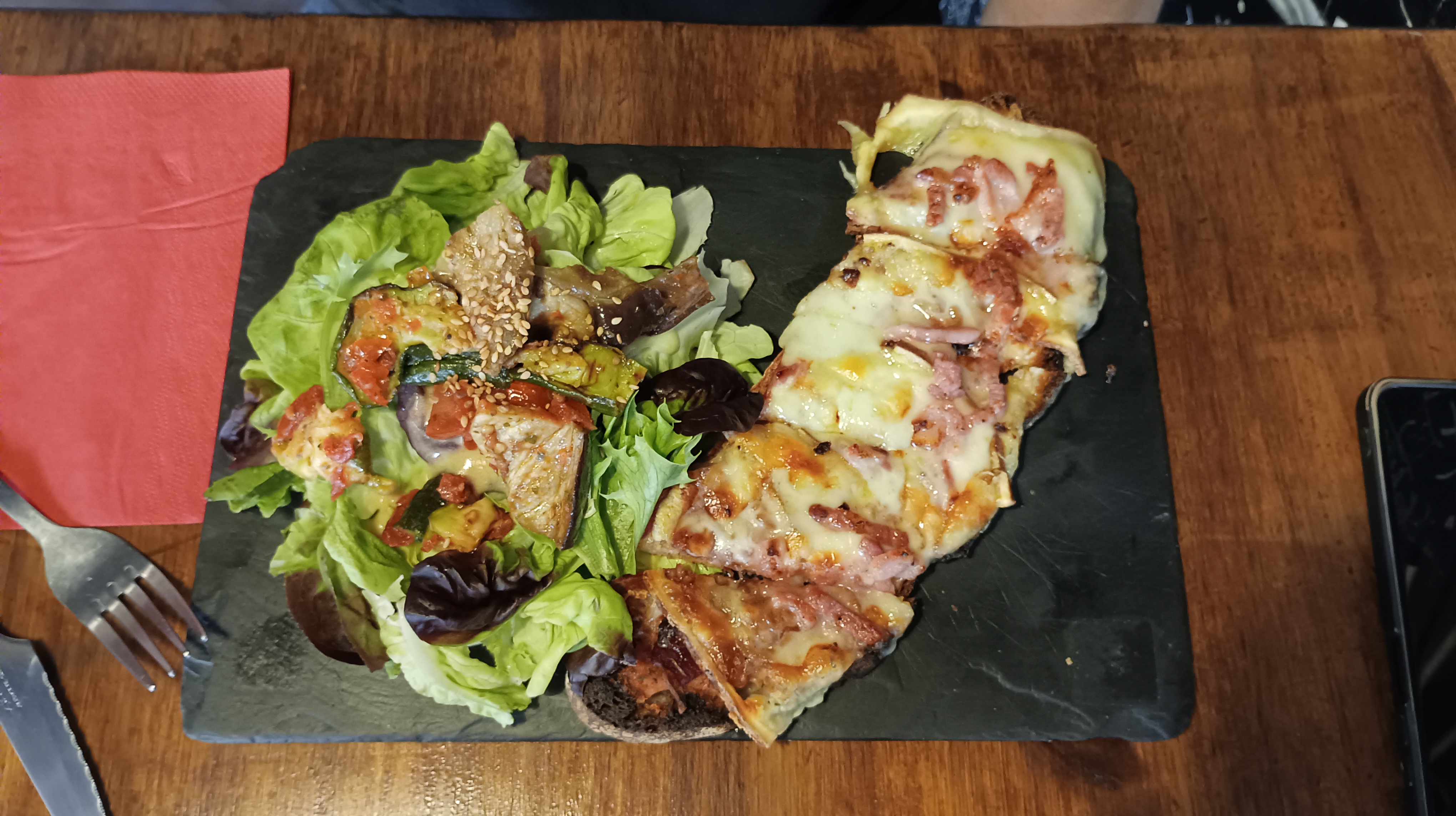Accueil super chaleureux alors que nous étions chargés comme des gorets 🐷 On a mangé comme des cochons ! Assiettes délicieuses, très gourmandes, avec de bons ingrédients, et accompagnées de salade 🥗 Bonnes bières locales 🍻 Desserts gourmands 🍰 Tout parfait, merci !!