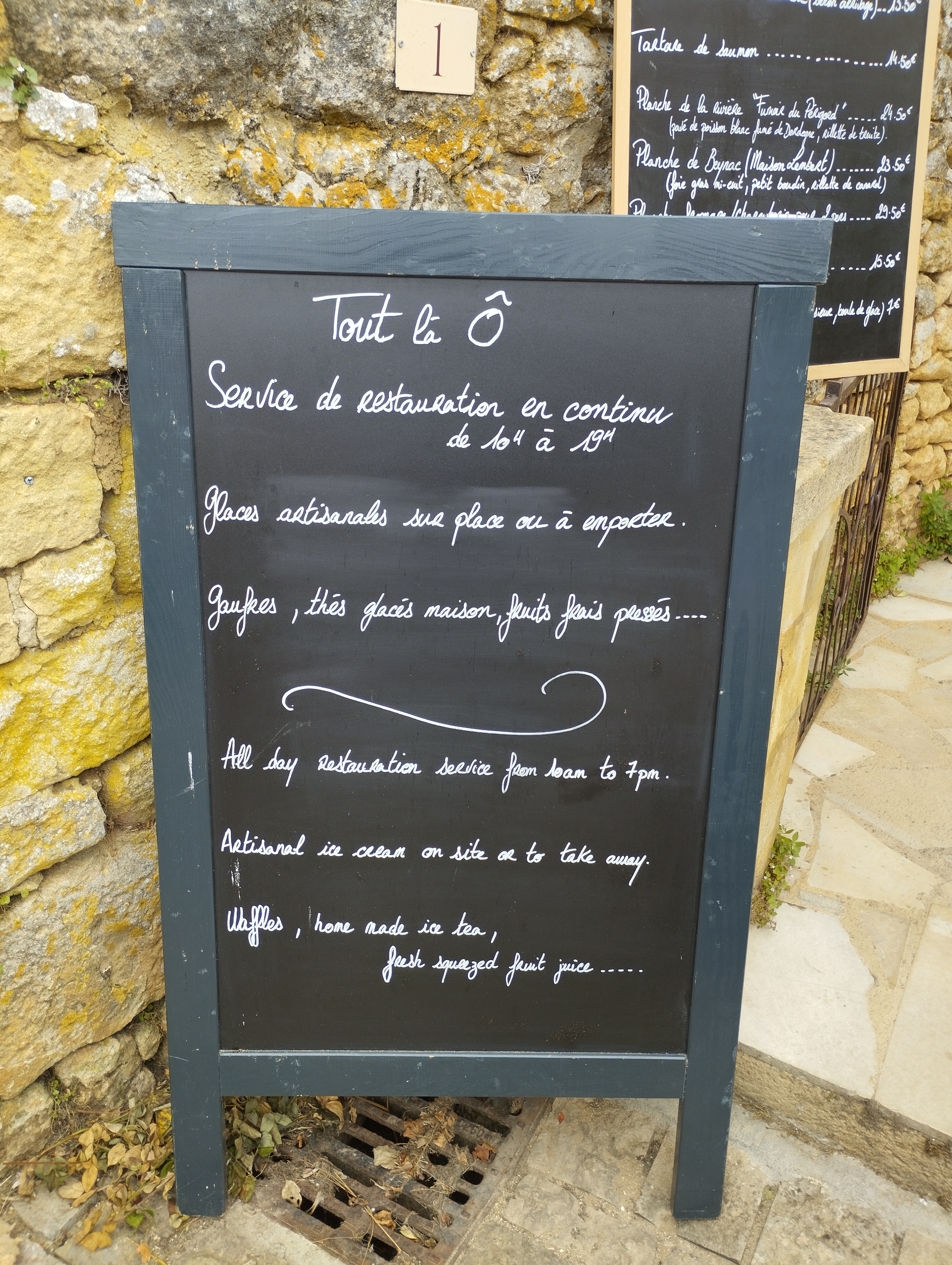 Endroit calme et charmant pour prendre une glace ou une boisson gazeuse après la visite du château de Beynac. La fille qui nous a aidé était très gentille !!