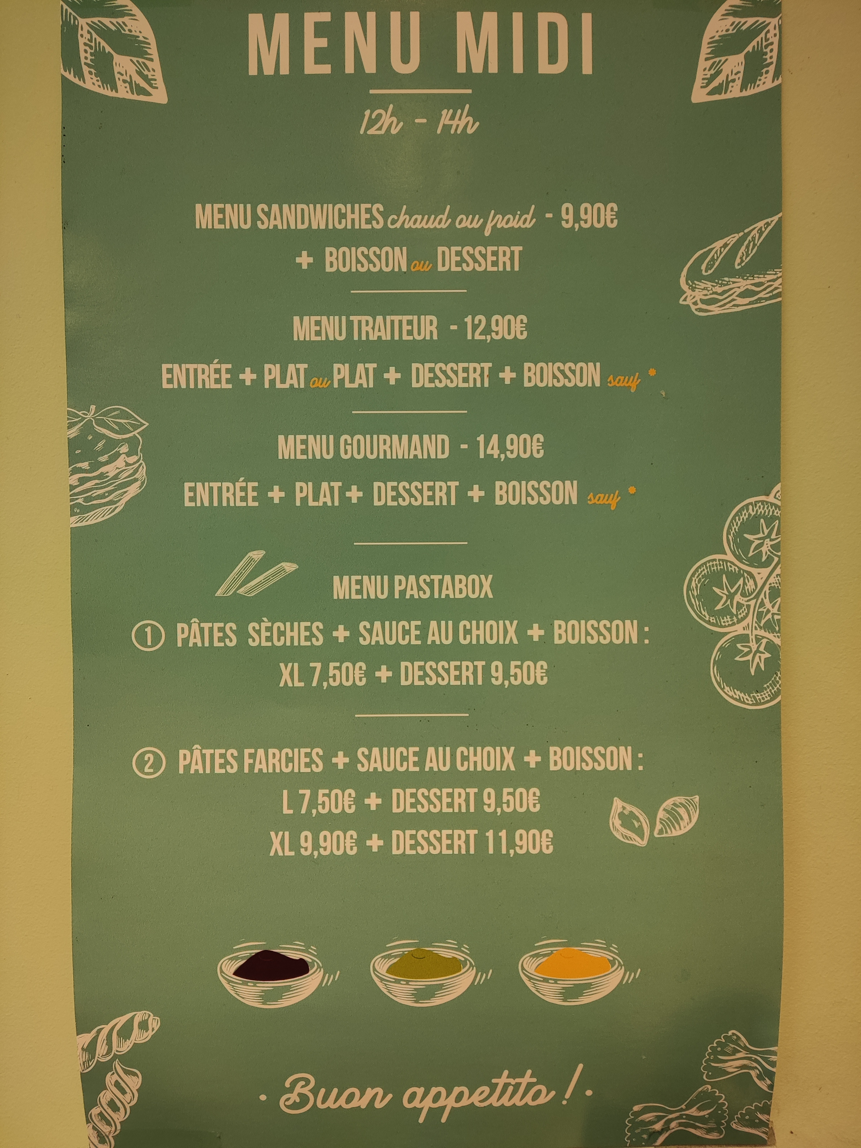 Formules midi extra, pâtes et sauces fraîches pour un prix très correct ! Avec en complément un accueil chaleureux, bravo !